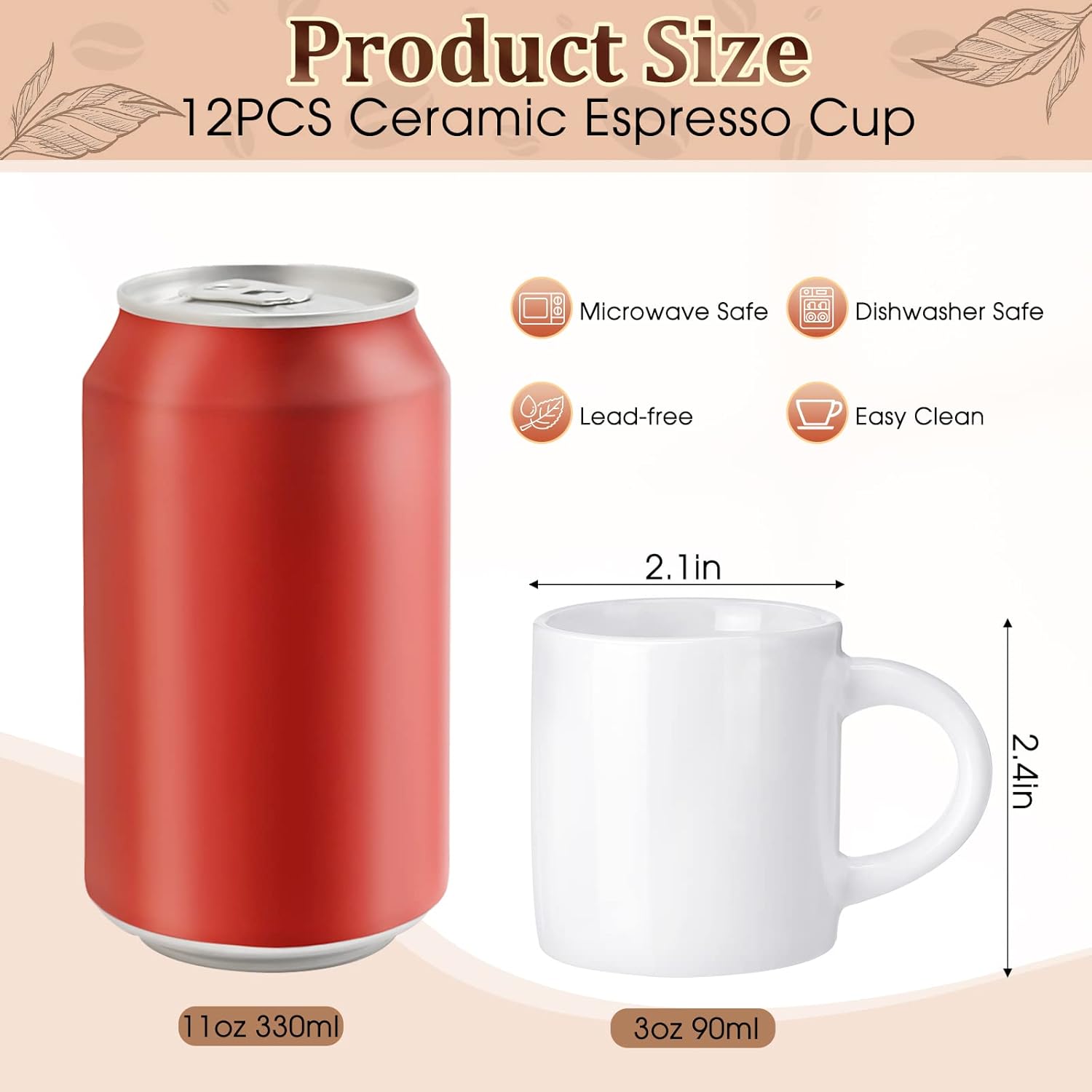 - Suitable Size: the capacity of this small coffee cup is about 3 oz/ 90 ml, approx. 2.09 inches/ 5.3 cm in top diameter, approx. 2.13 inches/ 5.4 cm in bottom diameter and approx. 2.36 inches/ 6 cm in height, which is not too big not too small, suitable for your favorite milk, coffee and other drinks, so that you can drink them all at once, without wasting