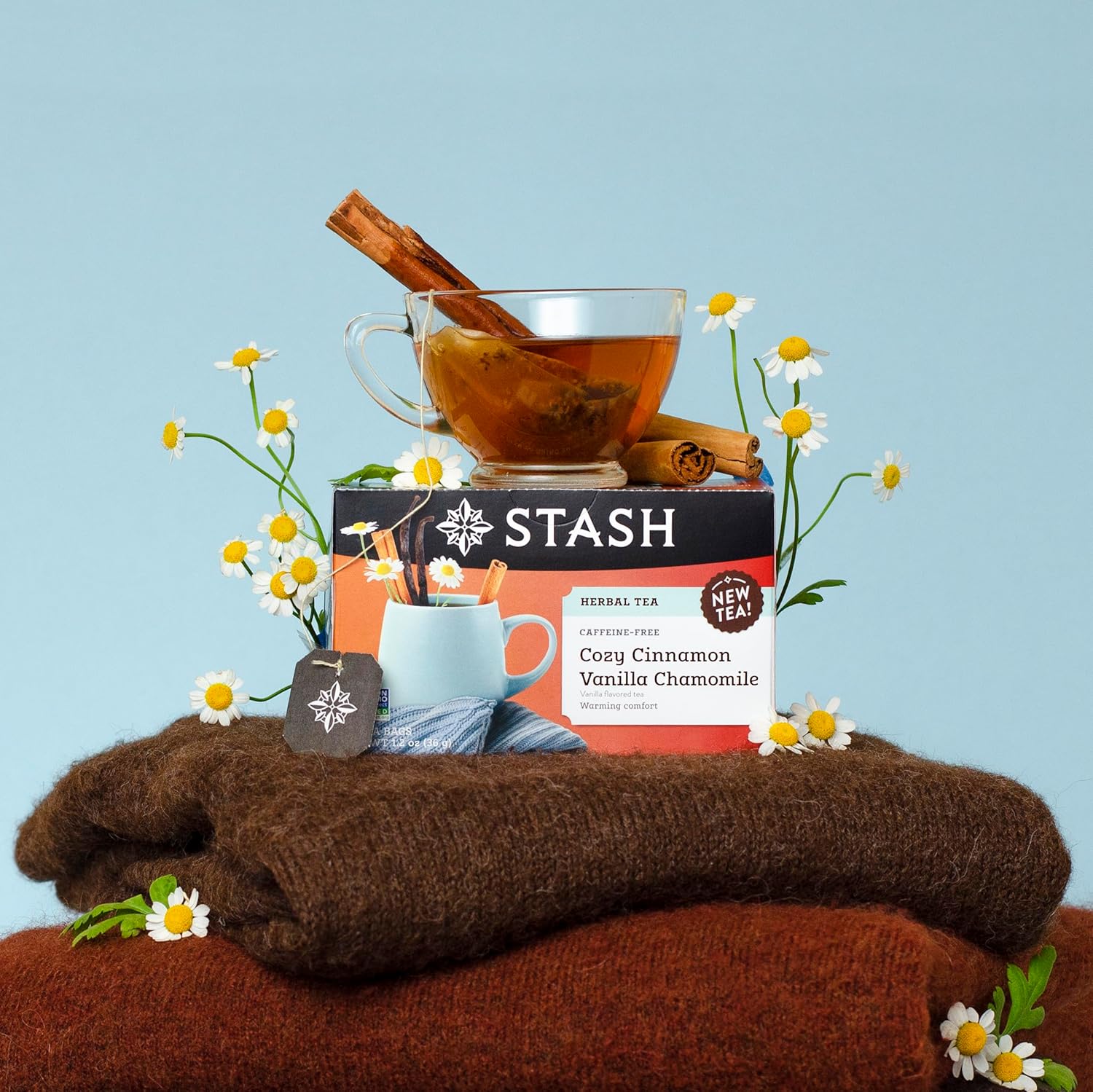 - Stash Tea Cozy Cinnamon Vanilla Chamomile Herbal Tea, Caffeine-Free, Kosher, Gluten Free & Non-GMO, 18 Tea Bags (Pack of 6)