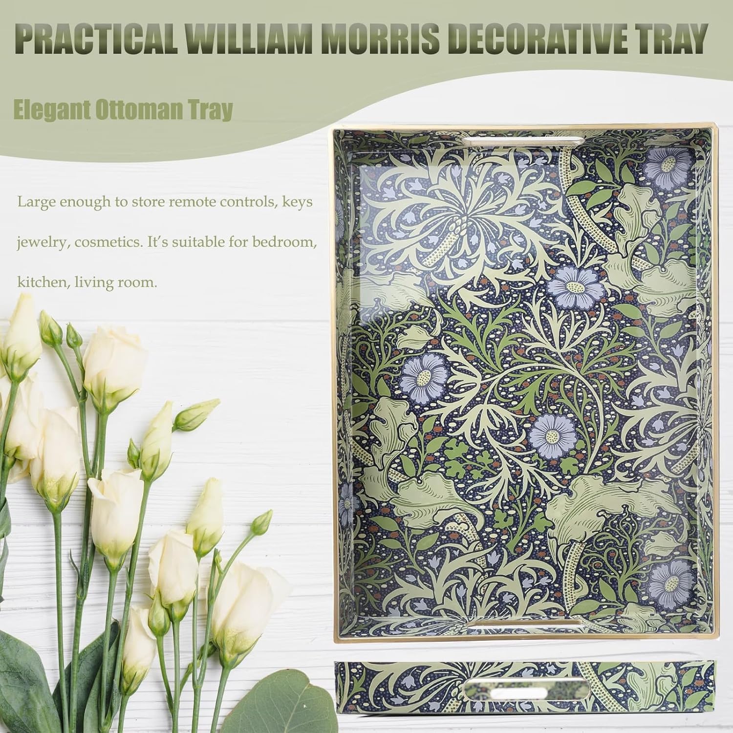 - Endless usage scenarios: This serving tray is perfect for a variety of occasions and scenarios. Use it as a breakfast tray, snack tray, tea tray, appetizer tray, bed tray, lap tray, and more. It's also great for organizing your cosmetics, jewelry, and other small items.