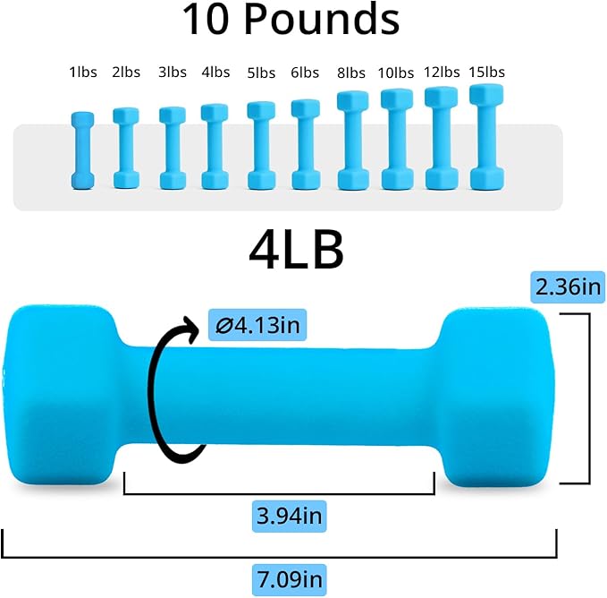 Portzon Weights Dumbbells 10 Colors Options Compatible with Set of 2 Neoprene Dumbbells Set,1-15 LB, Anti-Slip, Anti-roll, Hex Shape for Shoulder,Neck, and Hand Training for Seniors