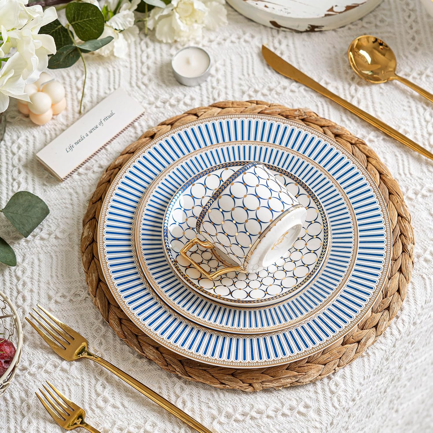 - 【Material】: The tea set is made of high quality and delicate cow bone powder and porcelain special clay, a natural material that does not contain any lead. Up to 45% cow bone powder content makes this real bone china tea set to look clear and delicate, and sound crisp and clear.