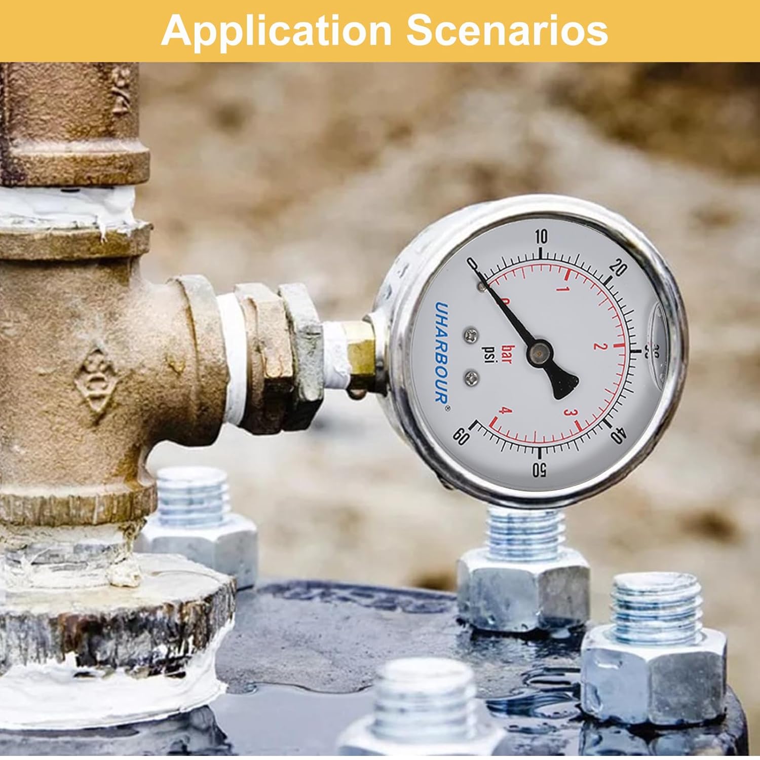 - STAINLESS STEEL CASE WITH DURABLE CONSTRUCTION is built to outlast the competition from normal steel or plastic case gauge. The superior quality steel and brass ensure the gauge corrosion resistance and extends the pool pressure gauge life.