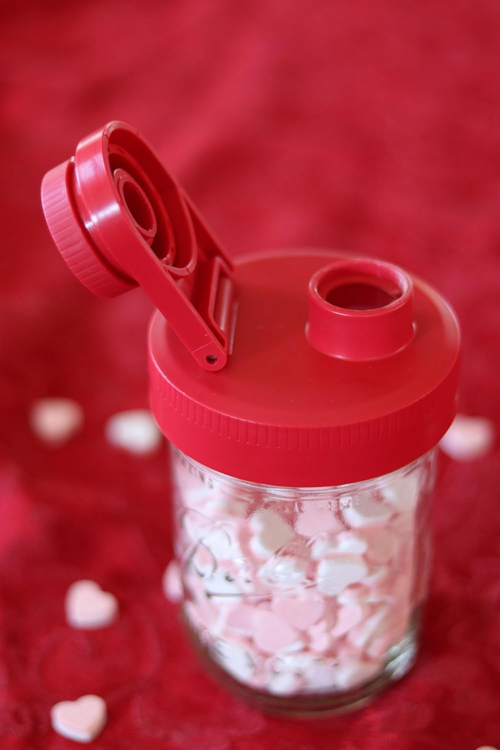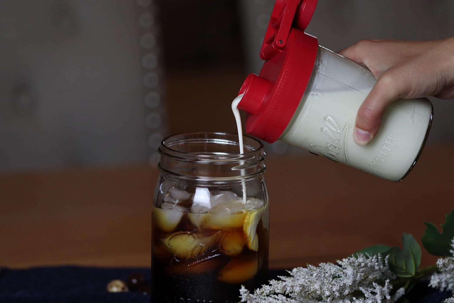 Brewing America Creamer Jar with Pouring Lid and 1 Pint (16 oz) Azure Mason Jar, Red Wide Mouth Pour Lid for Milk, Sugar, and Cream, 1-Pack
