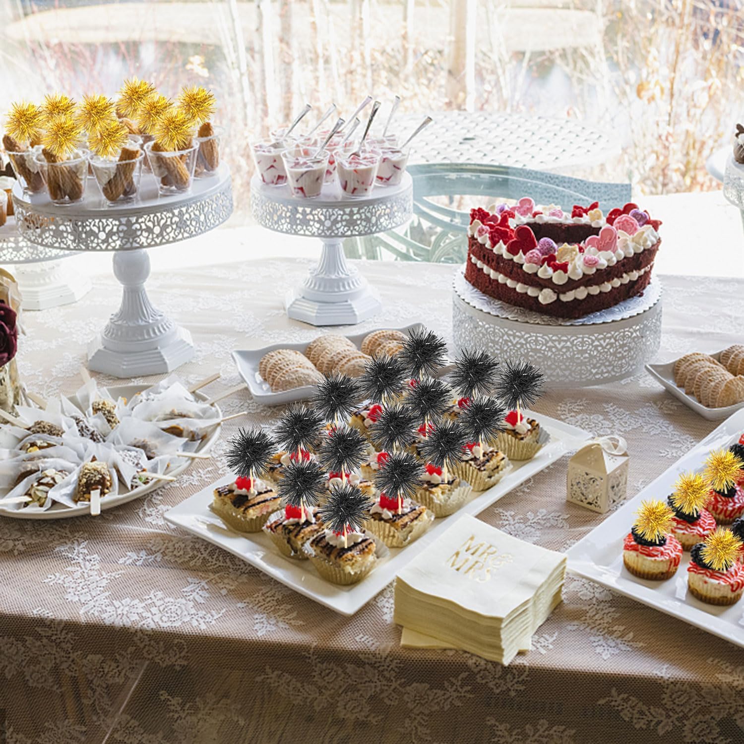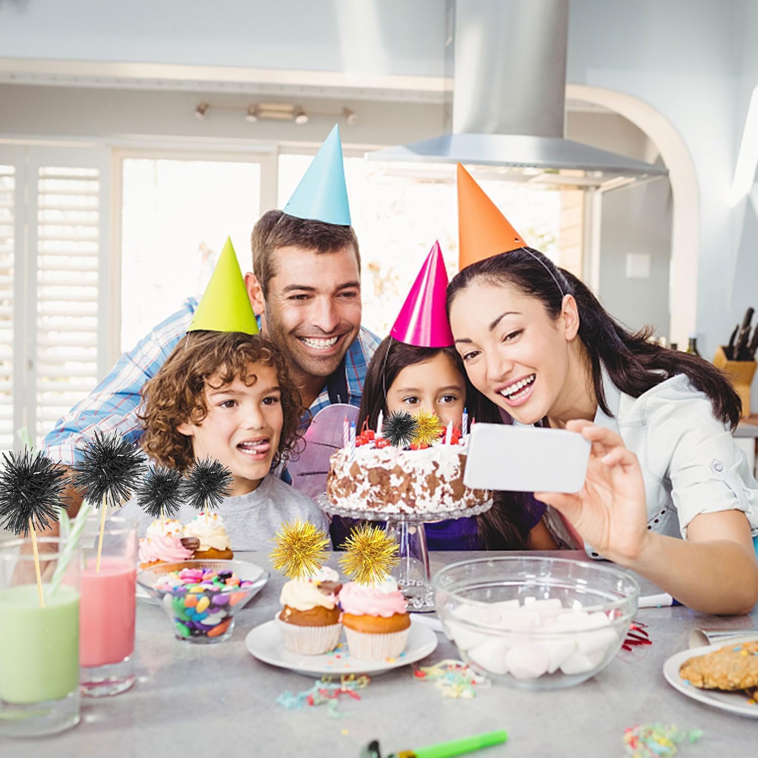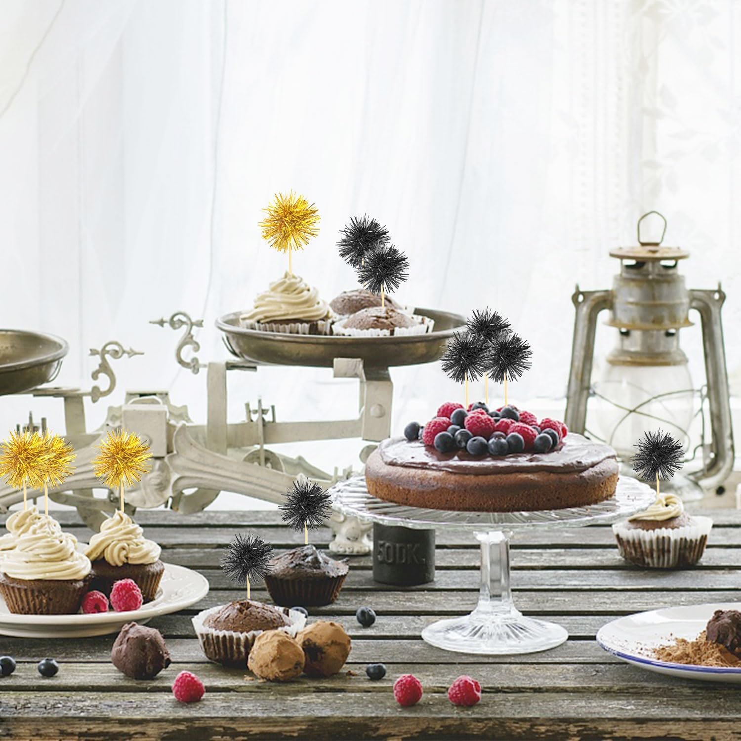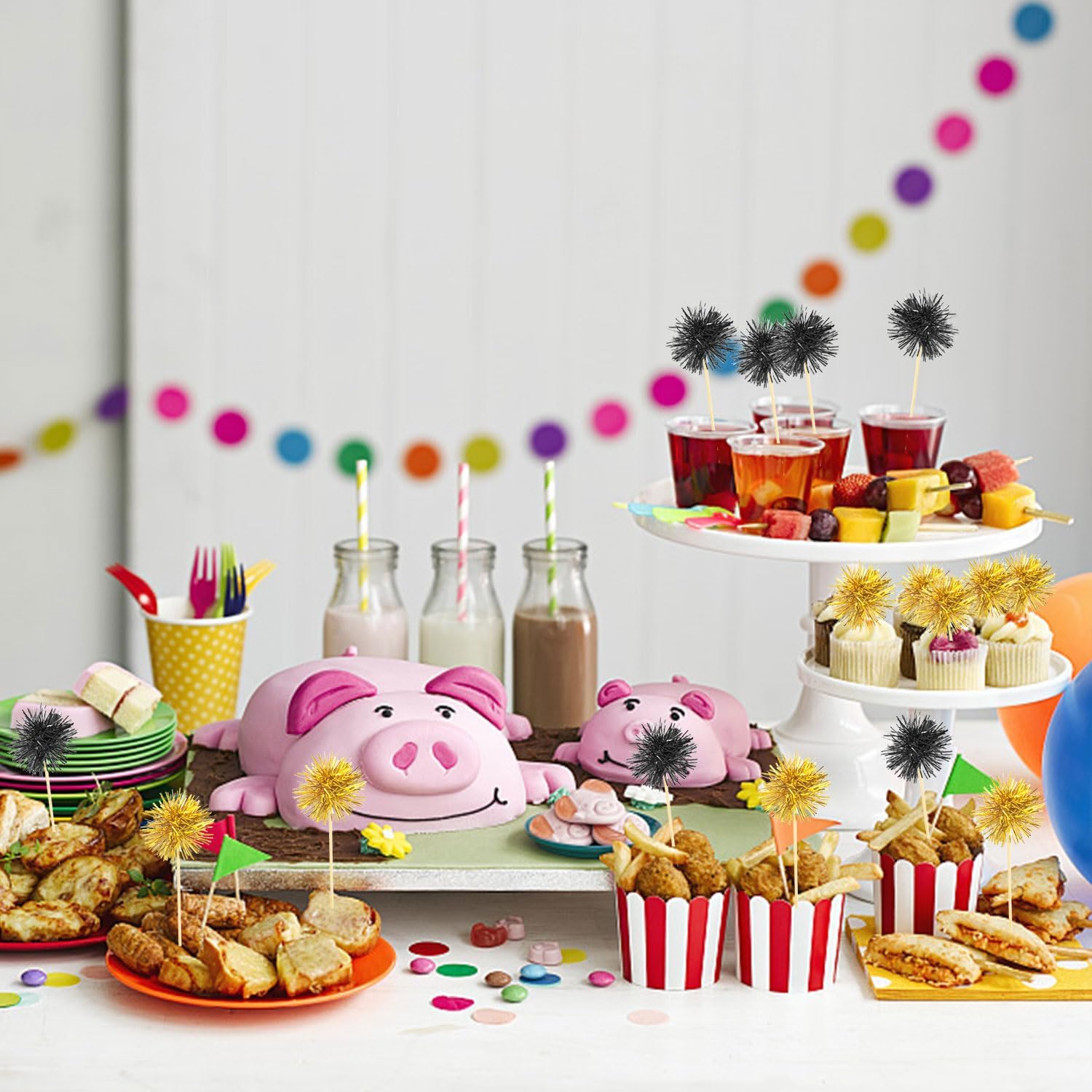 80 Pcs Firework Cupcake Topper Gold Graduation Cake Decorations Foil Frill Toothpicks for Party Decoration, Cake Toppers, Picnics, Bar, Birthday, Holiday (Black, Gold)