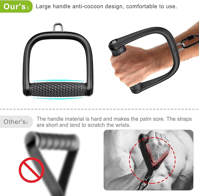 - The combo includes: 1× LAT Pulldown Double D Row Handle, 1× Tricep Rope(36 inches length), 1× LAT Pulldown Straight Bar(18 inches length), 2× Exercise D Handles