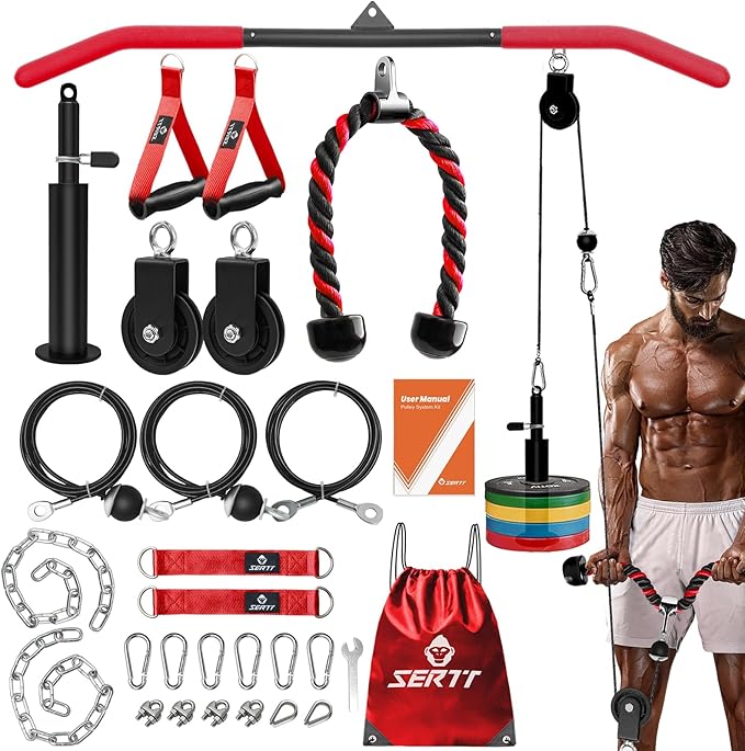 SERTT Home Gym Pulley System - Tricep Workout, Lat Pulldown, Biceps Curl, Triceps, Shoulders, Back, Forearm, Weight Cable for Squat Rack, Garage