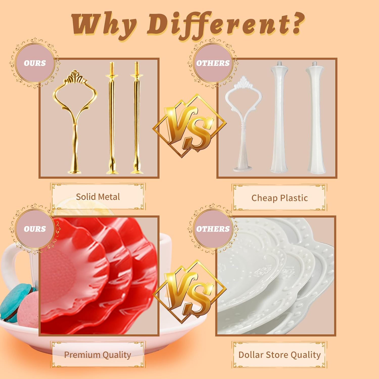 - Why Different: This cupcake stand is made of 4MM extra thick food grade plastic, much more better than 1mm dollar store quality. The bold metal rod also provide excellent texture and stability that can not be given by others