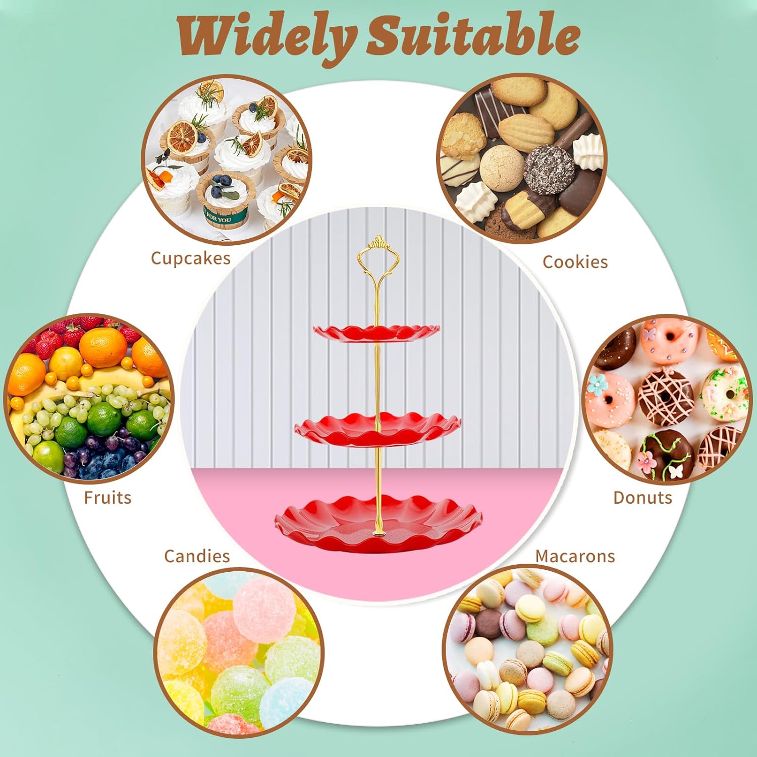 3 Tier Cupcake Stand Holder, Plastic Cup Cake Stand Tower with Tiered Serving Tray for Cupcakes, Donuts, Fruits and More, Red