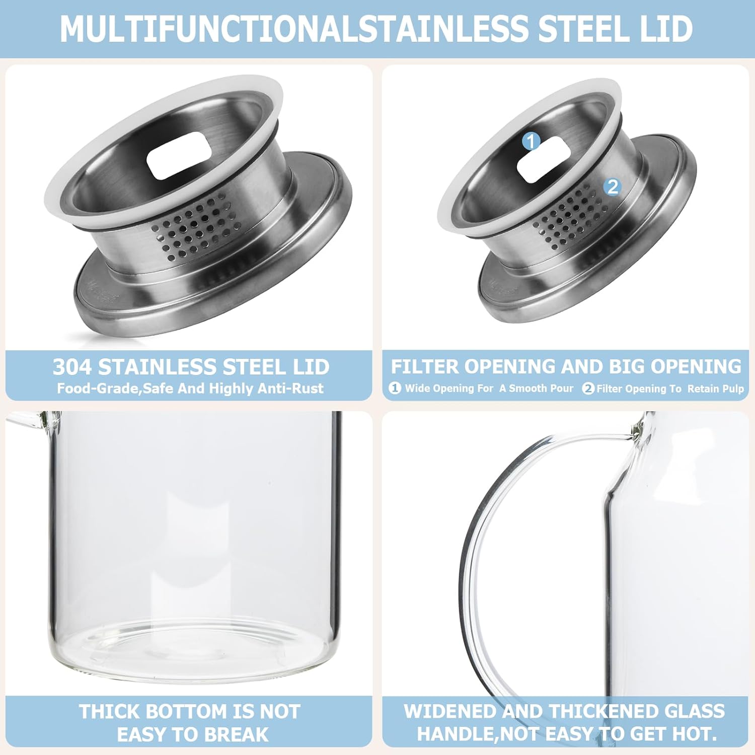 - SERVING FOR ALL OCCASION: This glass tea pitcher is widely used for water, iced tea, hot tea, fruit-infused water, homemade beverages, cold brew coffee, sangria, juice, lemonade, milk, wine, cocktail, light smoothie, etc. Suitable for daily needs at home, outdoors, parties, holiday gifts, etc