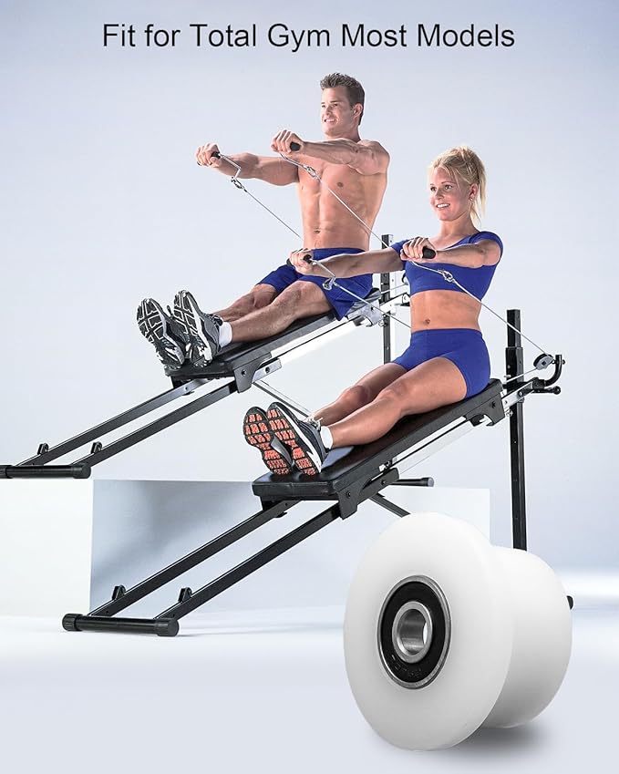 - Extensive Compatibility: Replacement machined wheels fit for Total Gym including 1000, 1100, 1400, 1500, 1600, 1700, 1800, 1900, Achiever, Core, Elite, Force, Gold, Gold Plus, Max, Platinum, Platinum Plus, Power Platinum, Premiere, Pro, Supra, Supreme, Ultima, Ultra, X-Force, and XLi.