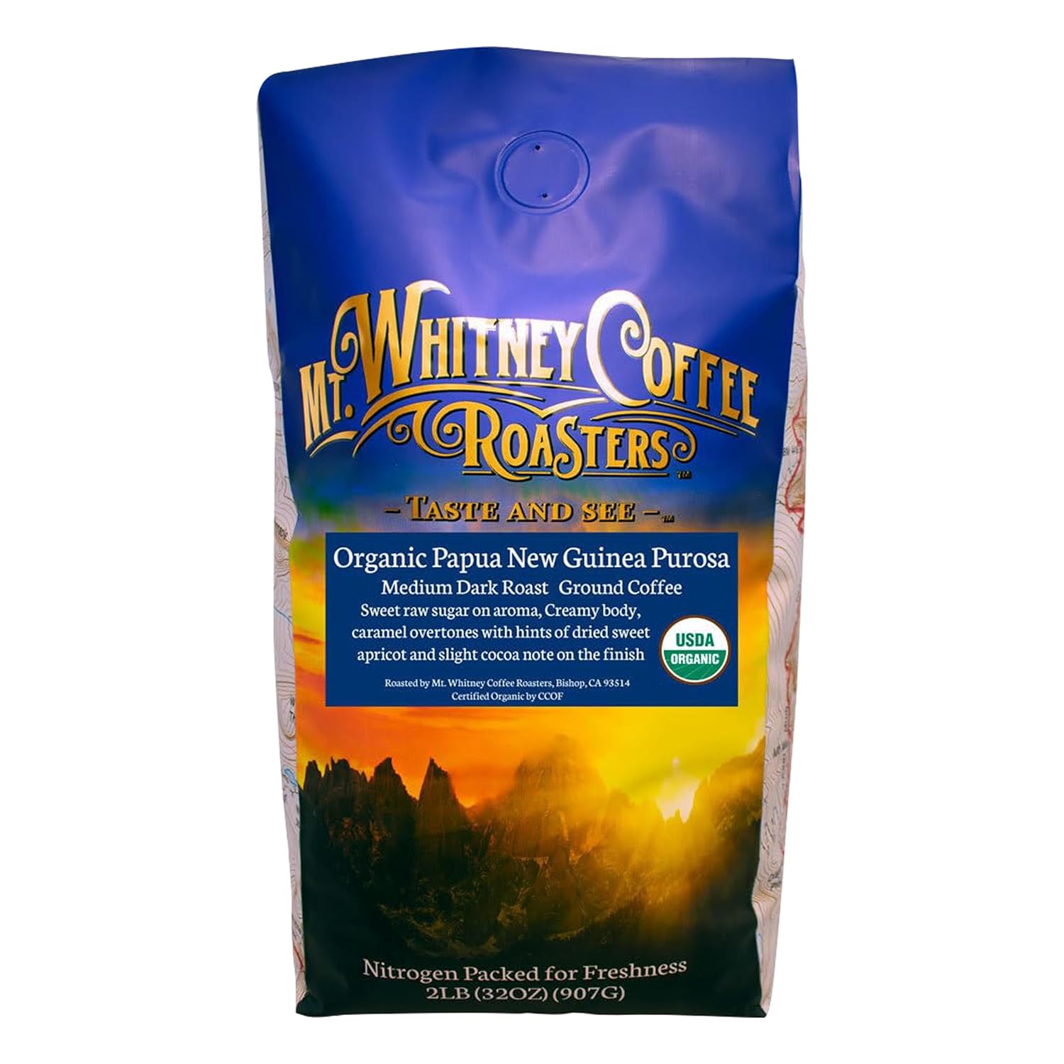 Mt. Whitney Organic Papua New Guinea, Medium Dark Roast, Low Acid Coffee (Ground, 2Lb)