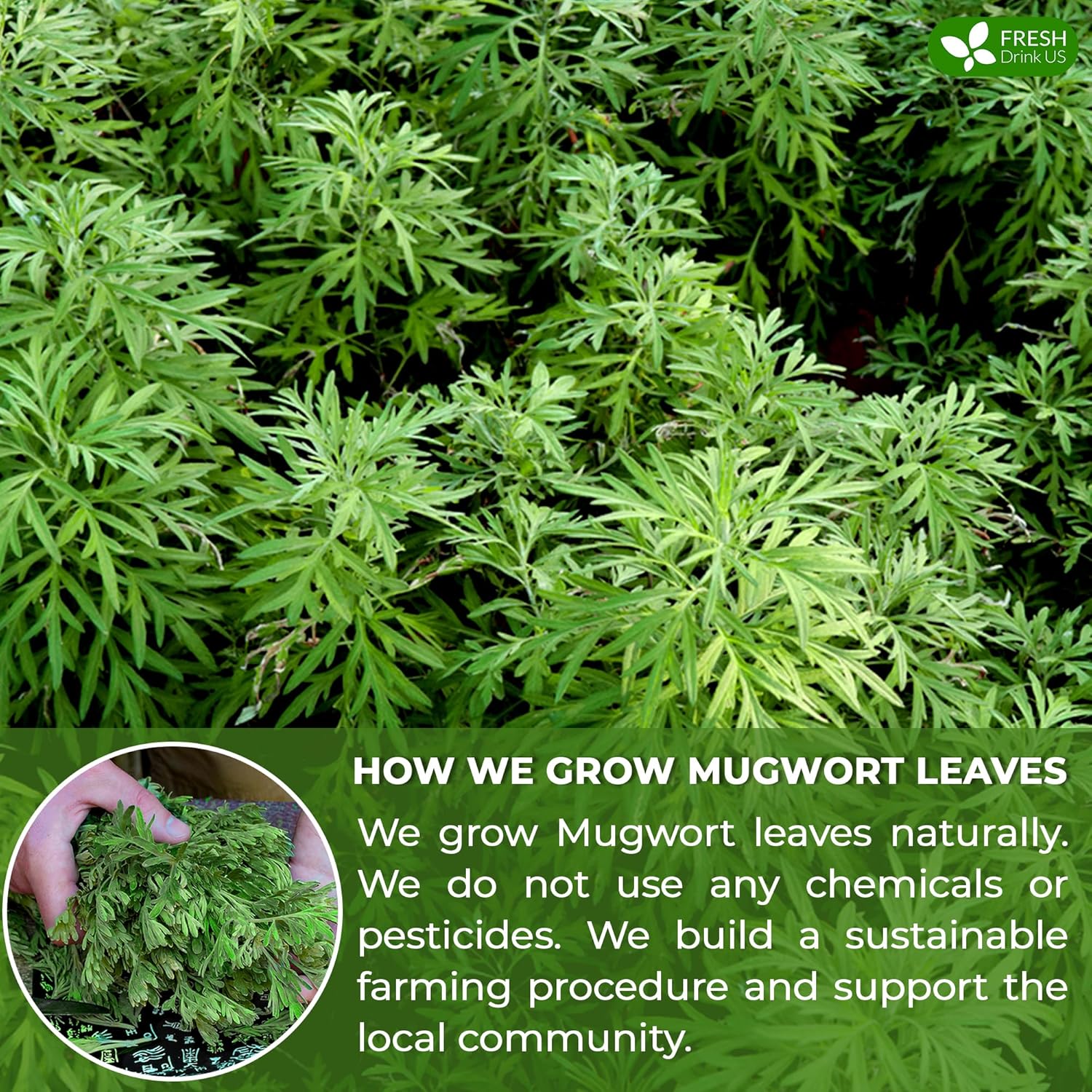 FreshDrinkUS, Premium 60 Mugwort Leaf Tea Bags, 100% Natural and Pure Mugwort Leaves. Loose Leaf Mugwort Herbal Tea. Mugwort Leaf Tea. No Sugar, No Caffeine, No Gluten, Vegan.