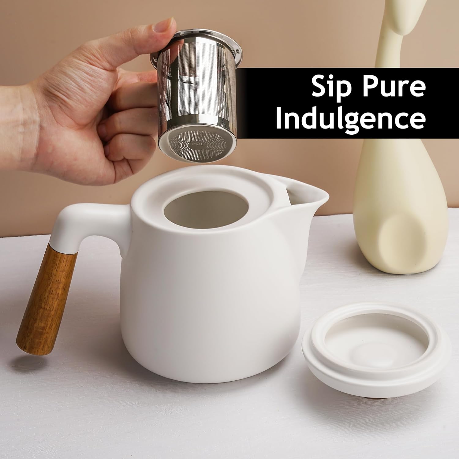 - πππππππ ππππππππ - Experience the elegance of this exquisite tea pot sets, which includes a 34 oz teapot, 4 teacups (10 oz), and 4 wooden saucers. With its modern white design, this tea cup set with teapot serves as a perfect coffee or tea companion for entertaining friends, providing a sophisticated way to enjoy life's moments.