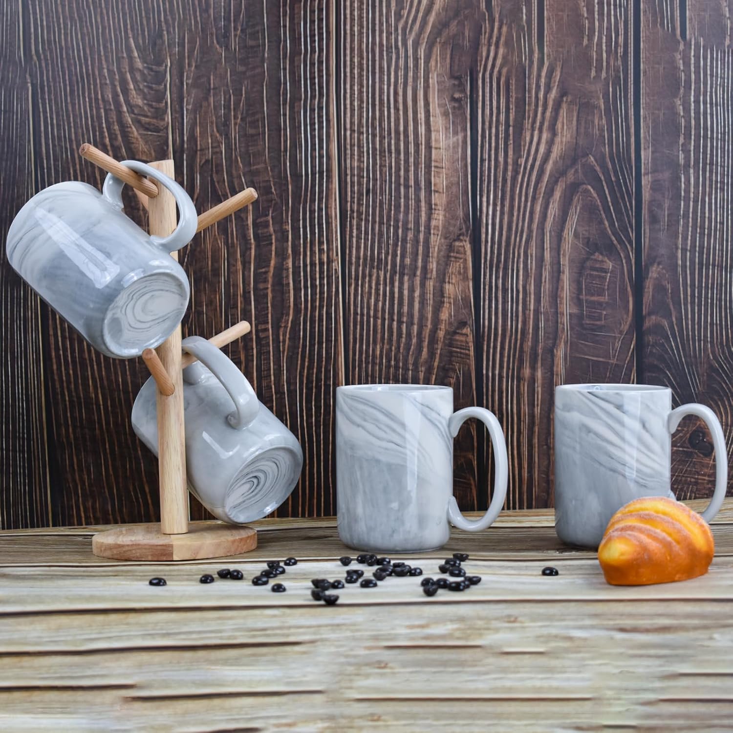 Coffee Mugs Set of 4,16 OZ Large Marble Ceramic Tea Cups with Big Handle,Bulk Grey Marble Mugs Set for Latte, Beer,Cappuccino,Microwave Dishwasher Safe Cup for Men Women Gift