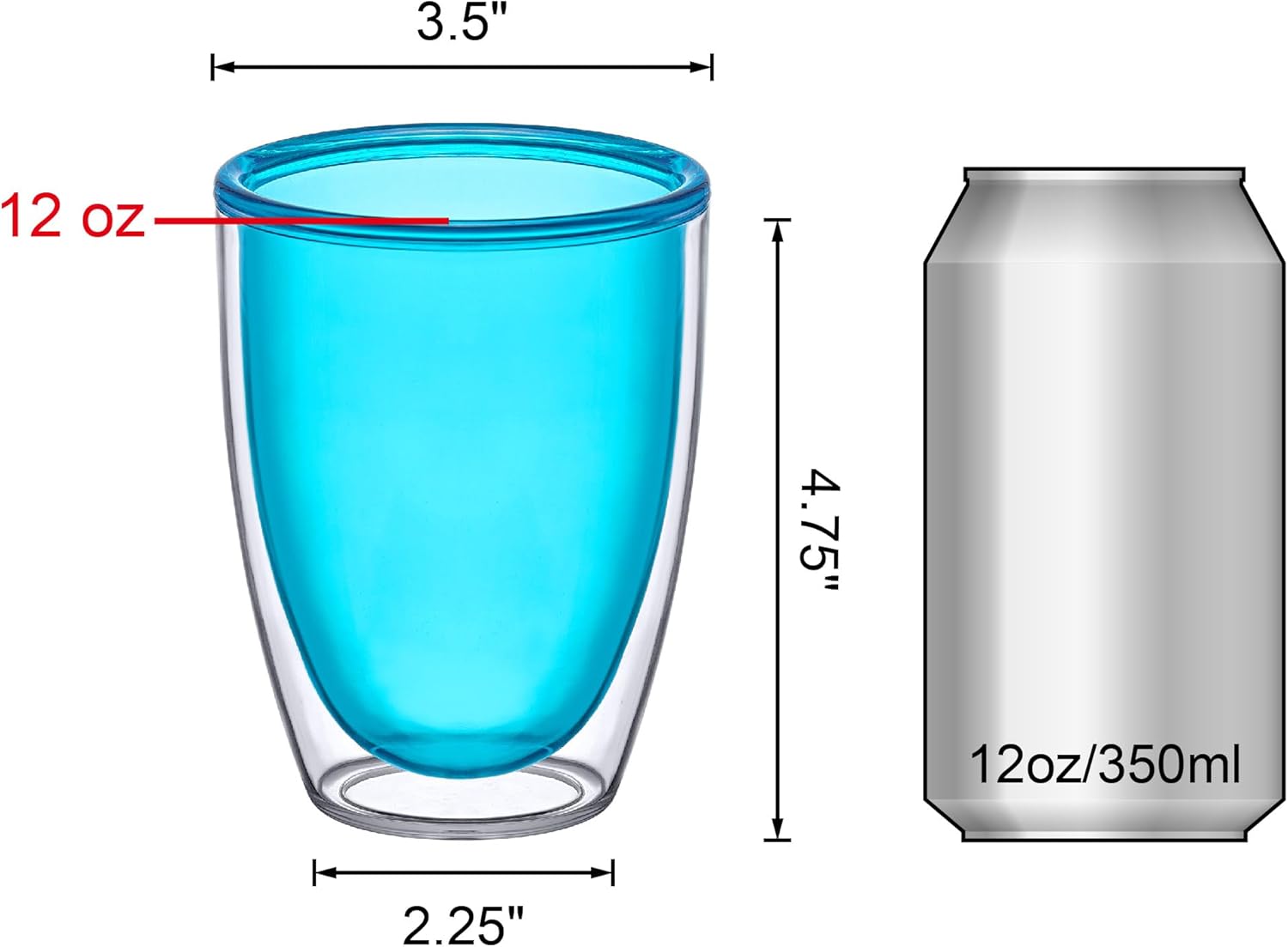 Amazing Abby - Andes - 12-Ounce Insulated Plastic Tumblers (Set of 4), Double-Wall Plastic Drinking Glasses, Mixed-Color Reusable Plastic Cups, BPA-Free, Shatter-Proof, Dishwasher-Safe