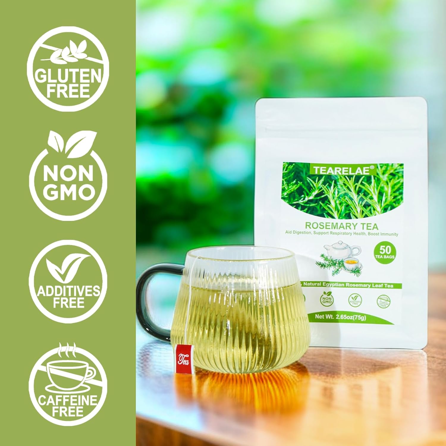 TEARELAE - Rosemary Tea - 1.5g x 50 Count - 100% Pure Rosemary Leaves Tea Bag - Country of Origin Egypt - Aid Digestion & Support Respiratory Health