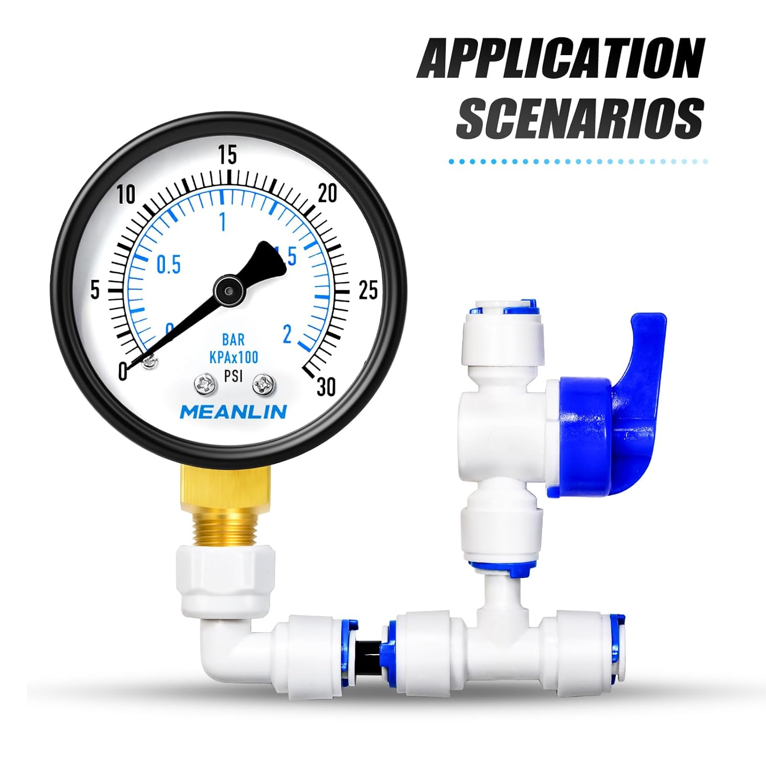MEANLIN MEASURE 0-30Psi Well Pump Pressure Gauge 1/4" NPT 2" FACE DIAL for Pool Sand Filter Water Oil Air Pressure Test Back Mount, with Teflon Tape