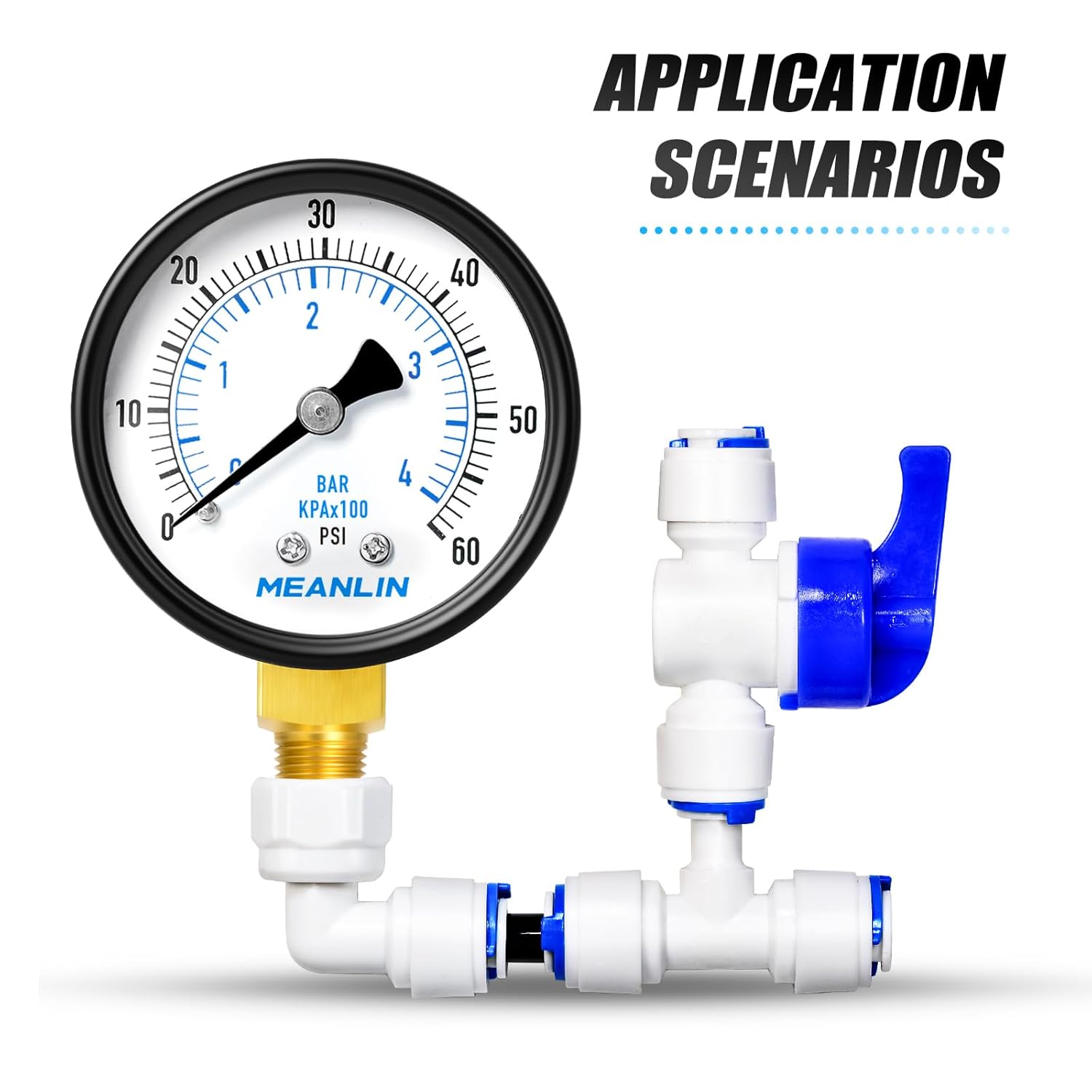 MEANLIN MEASURE 0-60Psi Well Pump Pressure Gauge 1/4" NPT 2" FACE DIAL for Pool Filter Pump Water Oil Air Compressor Tire Pressure Tester Back Mount, with Teflon Tape