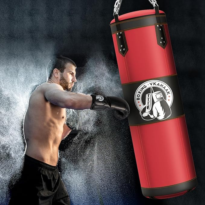 4FT Punching Bag for Adults/Kids, Unfilled Heavy Punching Bag, Boxing Bag Set with Punching Gloves, Wraps, Chain, Ceiling Hook for MMA Kickboxing Boxing Karate Muay Thai Taekwondo