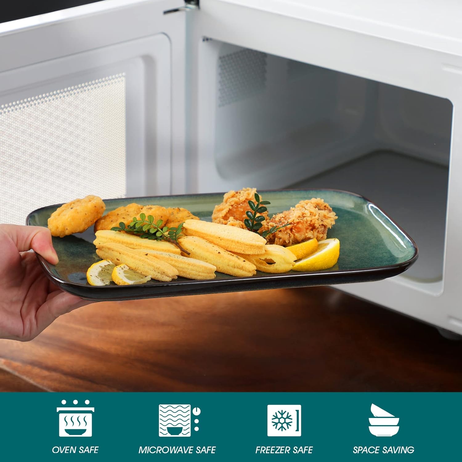 - 【Microwave & Dishwasher Safe】The serving plates are microwave and dishwasher safe, can easily warm up appetizers, and won't be very hot after microwave use. No matter with stringy dipping sauce or sticky dessert, platters can be cleaned easily using warm water. So it's very convenient for not only daily meals but also formal parties.