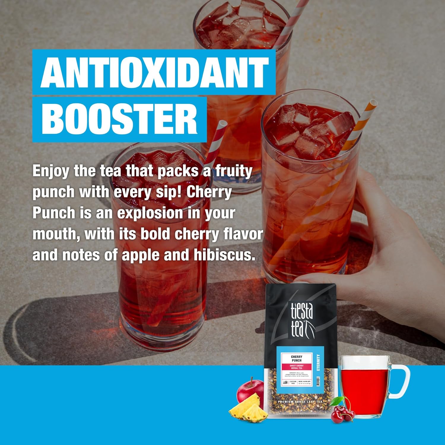 Tiesta Tea - Cherry Punch, Loose Leaf, Sweet Cherry Herbal Tea, Premium Blend, Non-Caffeinated Fruit Blend, Hot or Iced Up to 200 Cups, 16oz Resealable Pouch