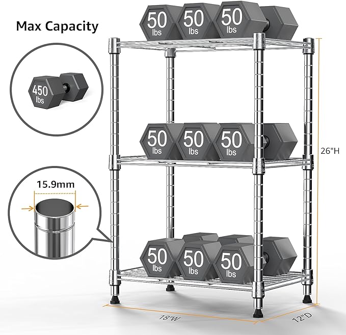 450 lbs Wire Storage Shelving 3-Tier Utility Shelving Unit Steel Organizer Wire Rack for Home,Kitchen,Office,Chrome(11.8" D x 17.7" W x 26.3" H)