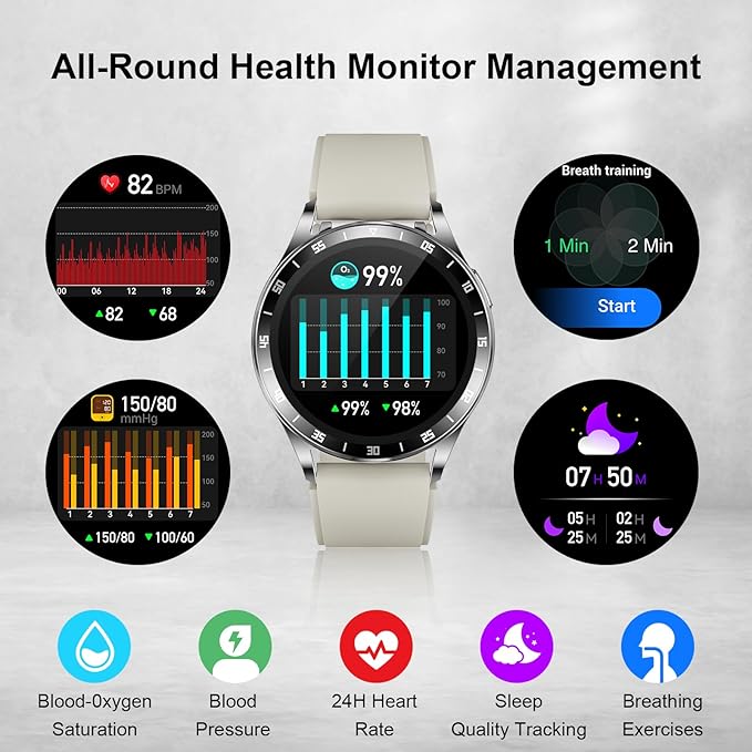 - 1.39 Inch Large Screen Smart Watch:With 1.39" large screen, super Retina HD display, 360*360 HD resolution, the Smart Watch has better color saturation, the picture quality is more delicate and clear. 10+ watch dials can be used, and you can define your own theme.
