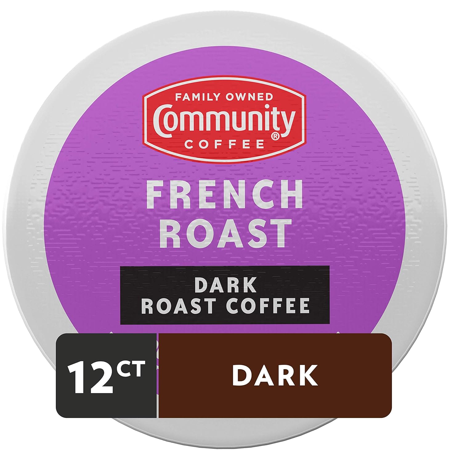 Community Coffee French Roast 12 Count Coffee Pods, Extra Dark Roast, Compatible with Keurig 2.0 K-Cup Brewers, 12 Count (Pack of 2)