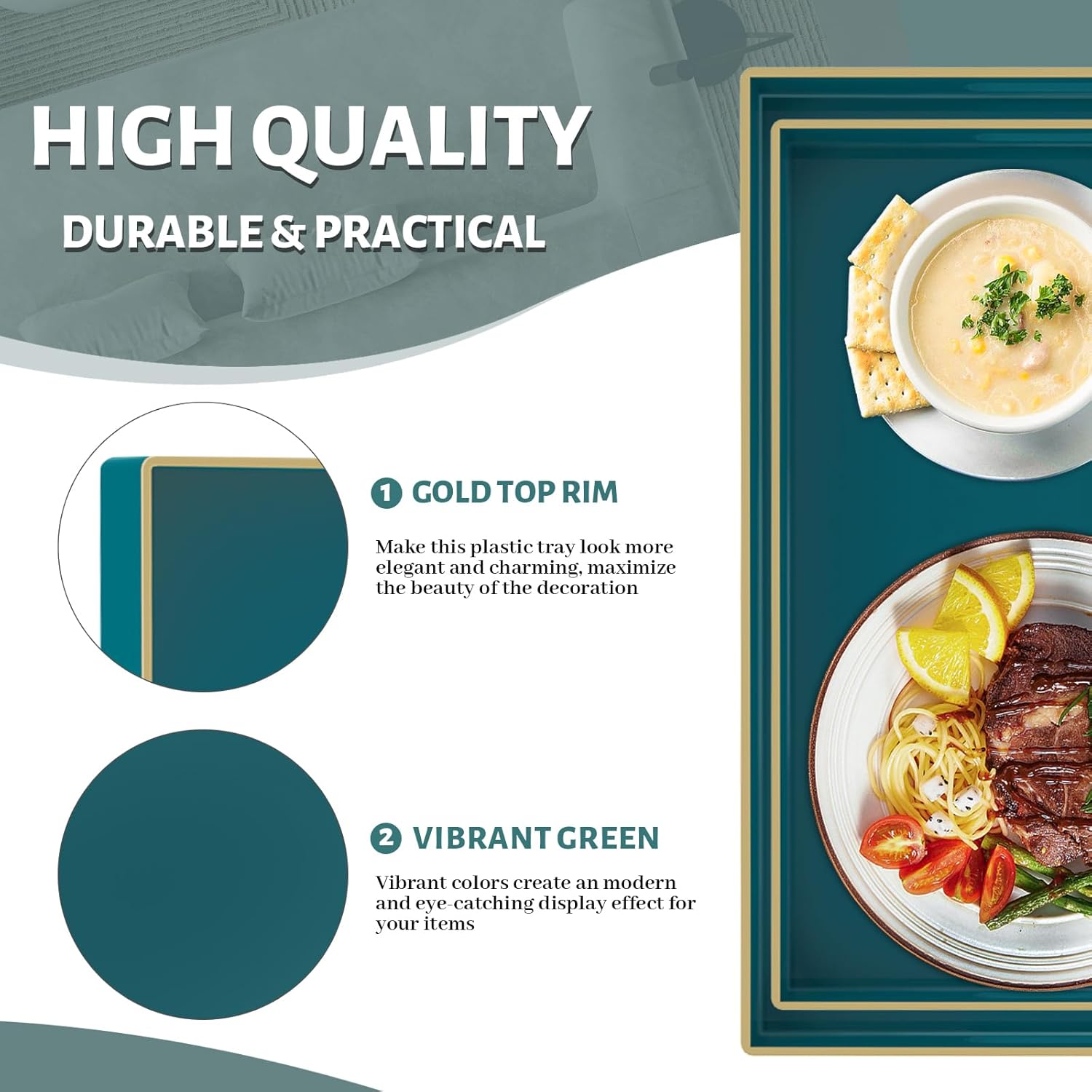 MAONAME Green Serving Tray Set of 2, Plastic Decorative Tray with Handles, Rectangular Coffee Table Trays for Ottoman, Nesting Trays for Living Room, Bedroom