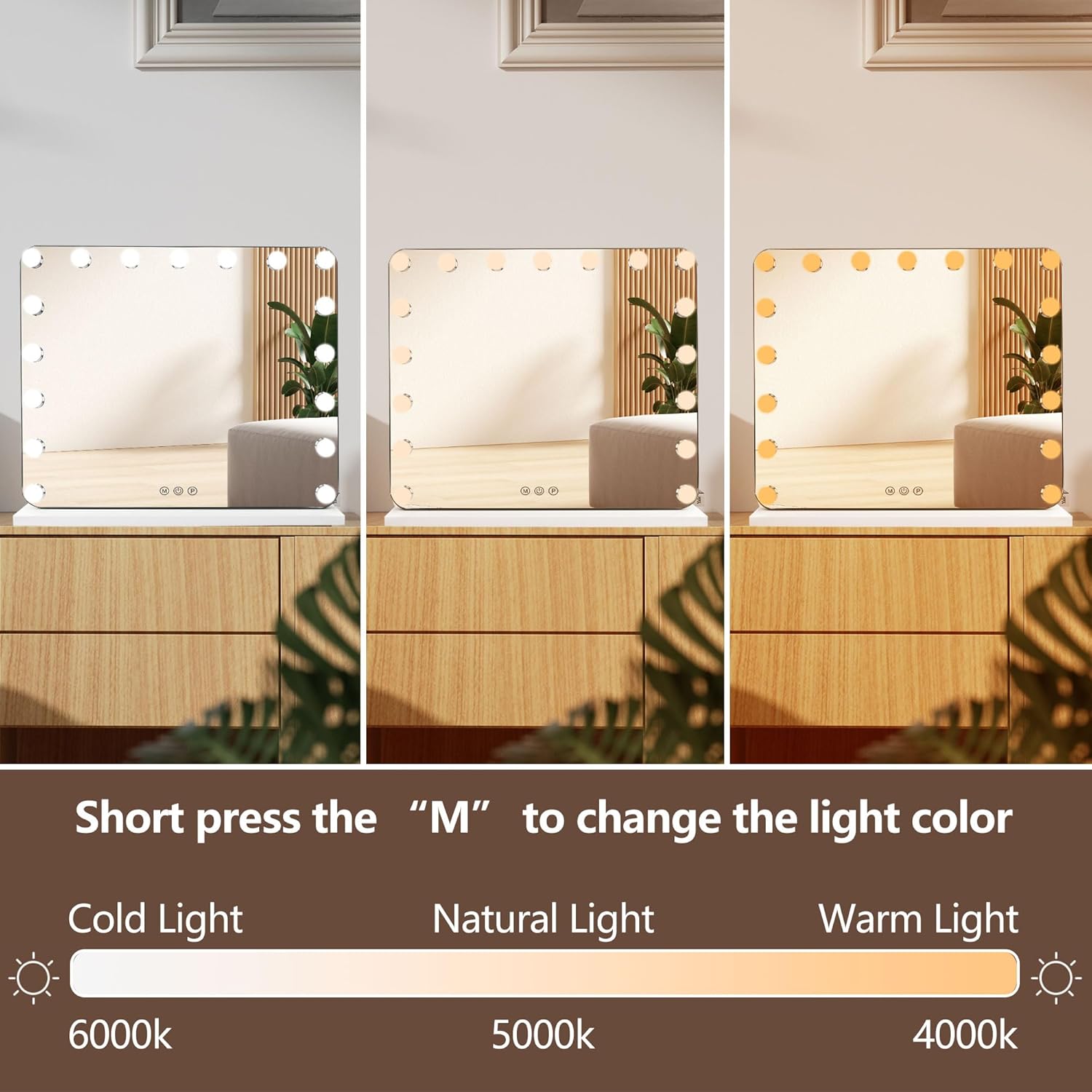 - 【Tru-Gloss Lighting Technology】 Professional-grade illuminated mirror with industry-leading CRI 95 delivers true-to-life color accuracy,matching natural sunlight's full spectrum。Seamlessly cycle through Soft White/Natural Daylight/Neutral White modes via touch controls - achieve salon-perfect makeup matching any environment from golden hour sunsets to studio photography sessions。