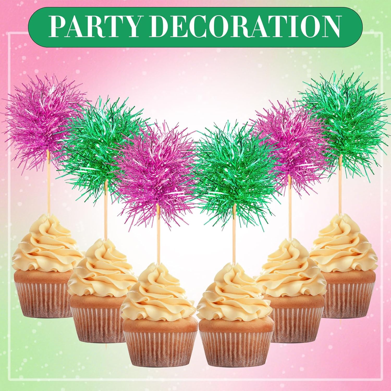 Chinco 100 Pcs Foil Firework Cupcake Toppers Sparkle Tinsel Cake Toppers Cake Decoration Cocktail Fruit Toothpick for Birthday Wedding Graduation Party(Pink, Gold)