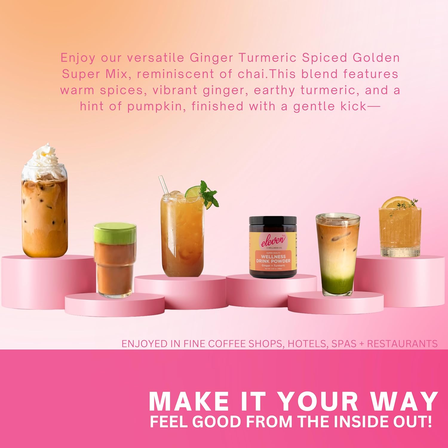 - Ginger Golden Milk : Savor our vegan, gluten-free blend reminiscent of spicy chai. With turmeric, black pepper, ginger, cinnamon, and a hint of pumpkin spice, it's an elixir of delicious indulgence.