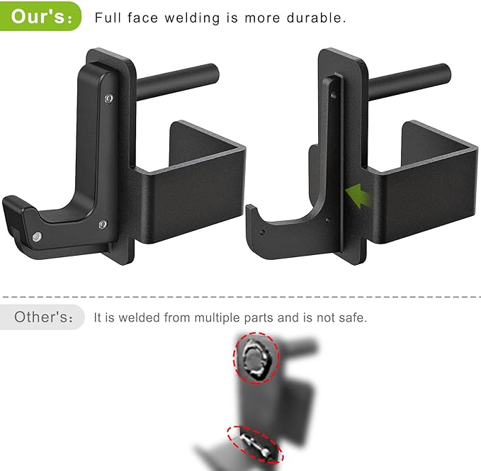- 【Heavy Duty】Our barbell holder is made of steel, fully welded, and has a black powder-coated surface, making it durable and not prone to rust. Each hook can hold up to 1000 pounds of weight without bending or breaking
