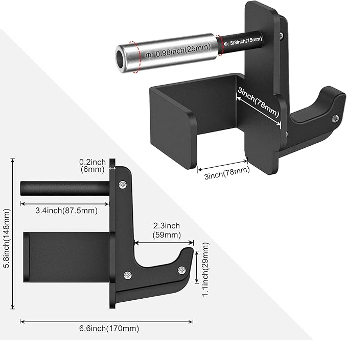 - 【Heavy Duty】Our barbell holder is made of steel, fully welded, and has a black powder-coated surface, making it durable and not prone to rust. Each hook can hold up to 1000 pounds of weight without bending or breaking