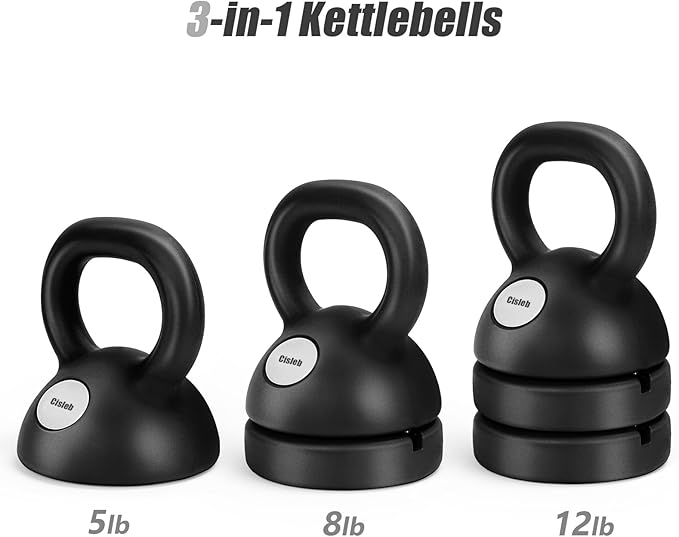 Adjustable Kettlebell Weight Set: 3-in-1 Kettlebells (5lbs 8lbs 12lbs) for Home Gym Full-Body Workout Strength Training Weight Loss | Good for Beginners