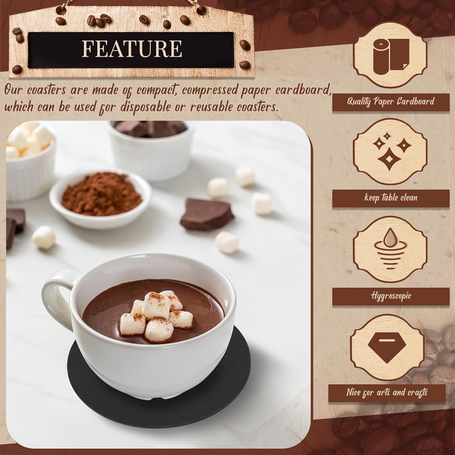 - Package Content: you will receive 200 disposable cardboard coasters, there are enough quantities to meet your needs in daily use and replacement requirements, you could use them on your own and share them with other people