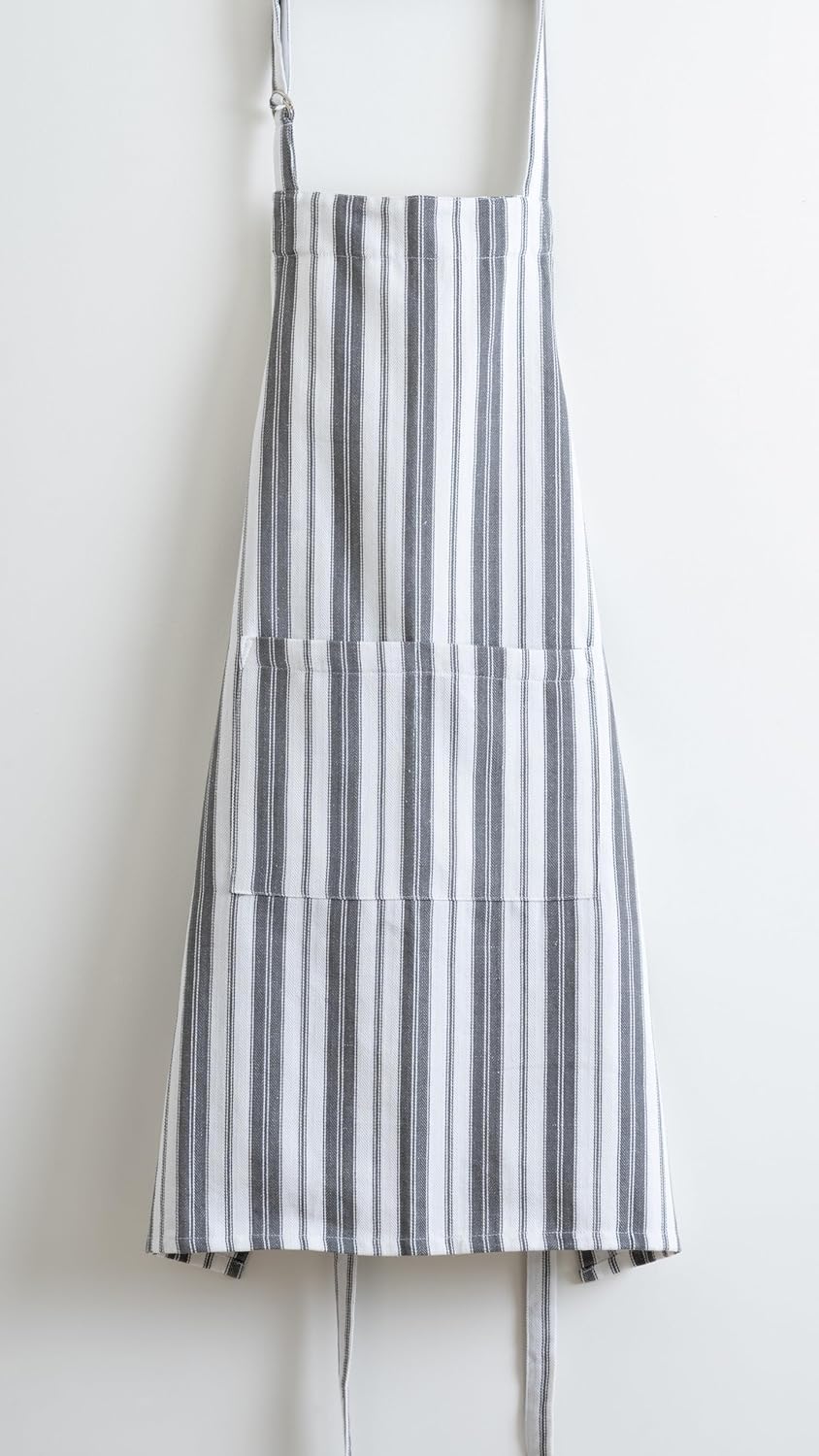 1 Oven Mitt, 1 PotHolder & 1 Kitchen Apron Set - Durable Heat Resistant Gloves - Thick Mittens for Kitchen - Suitable for Cooking, Baking, Grilling – Men & Women – Dark Grey Stripes - Casa De Lan