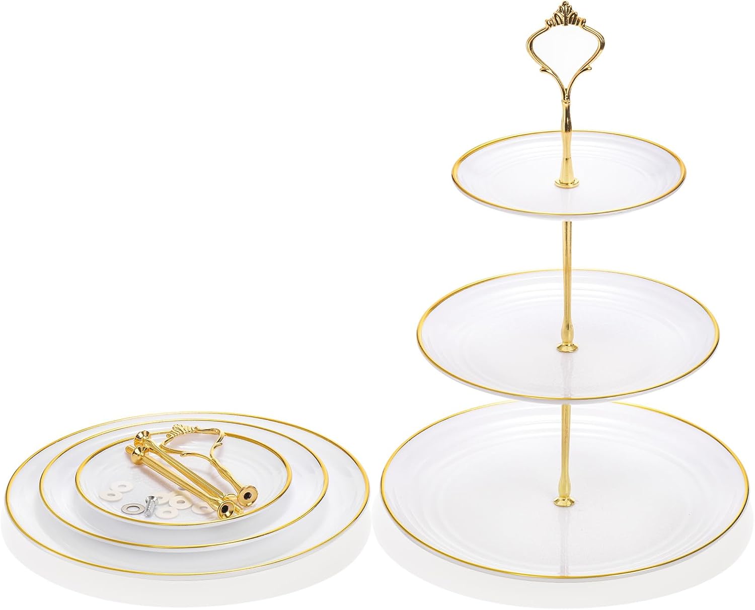 - Package Include: The set comes with 3 packs tiered cake stands, enough quantity to meet your party food display. There are 3 different sizes of tiered trays, measuring 6"Dia, 8"Dia and 10"Dia from top to bottom, ideal sizes to display your cupcakes, cookies, candies, desserts, treats, etc.