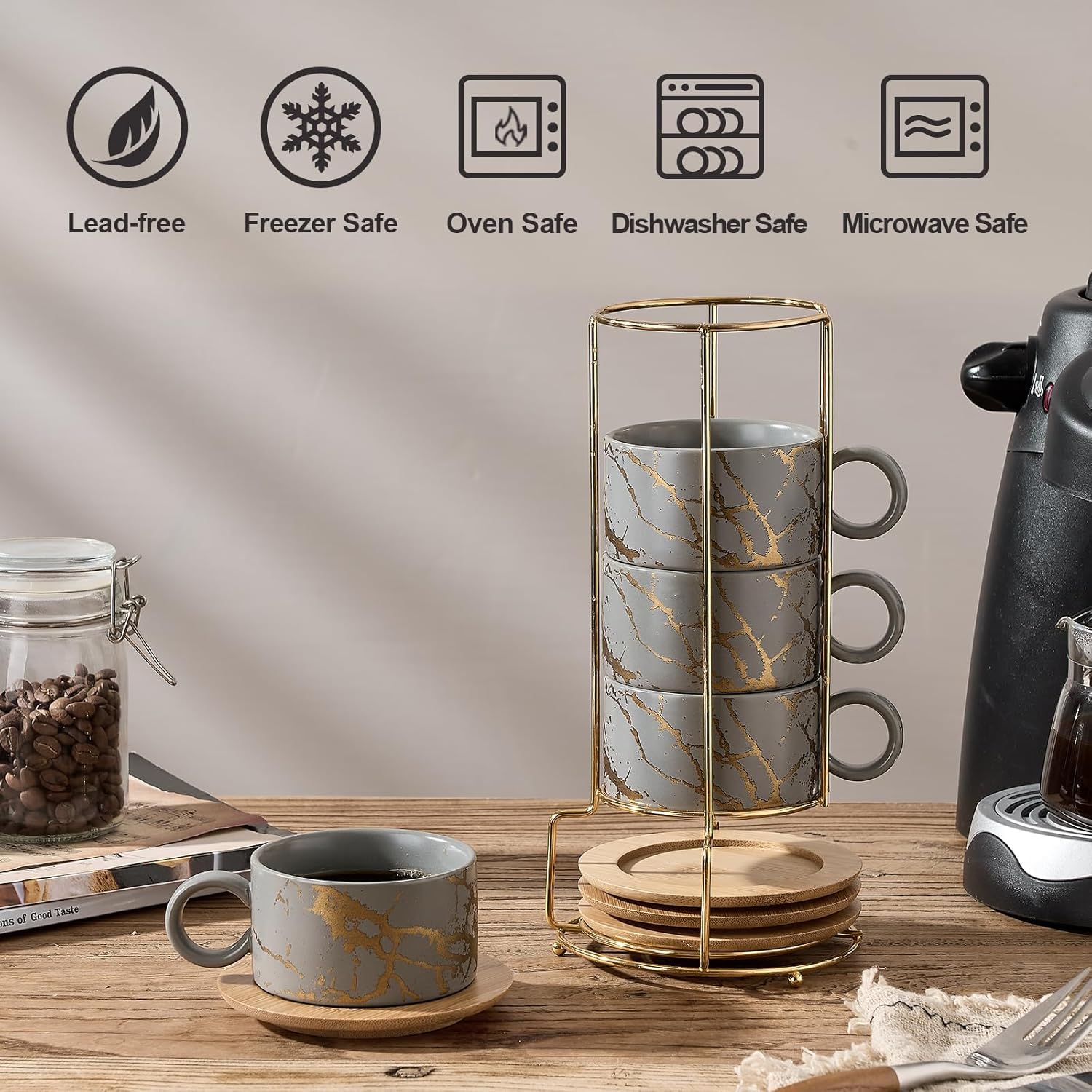 - 【Have A Coffee House Experience】A Simple yet classy design that perfectly fits your espresso maker. They have a cafe look that actually makes you feel like you're at a coffee shop abroad with our stackable espresso cups.