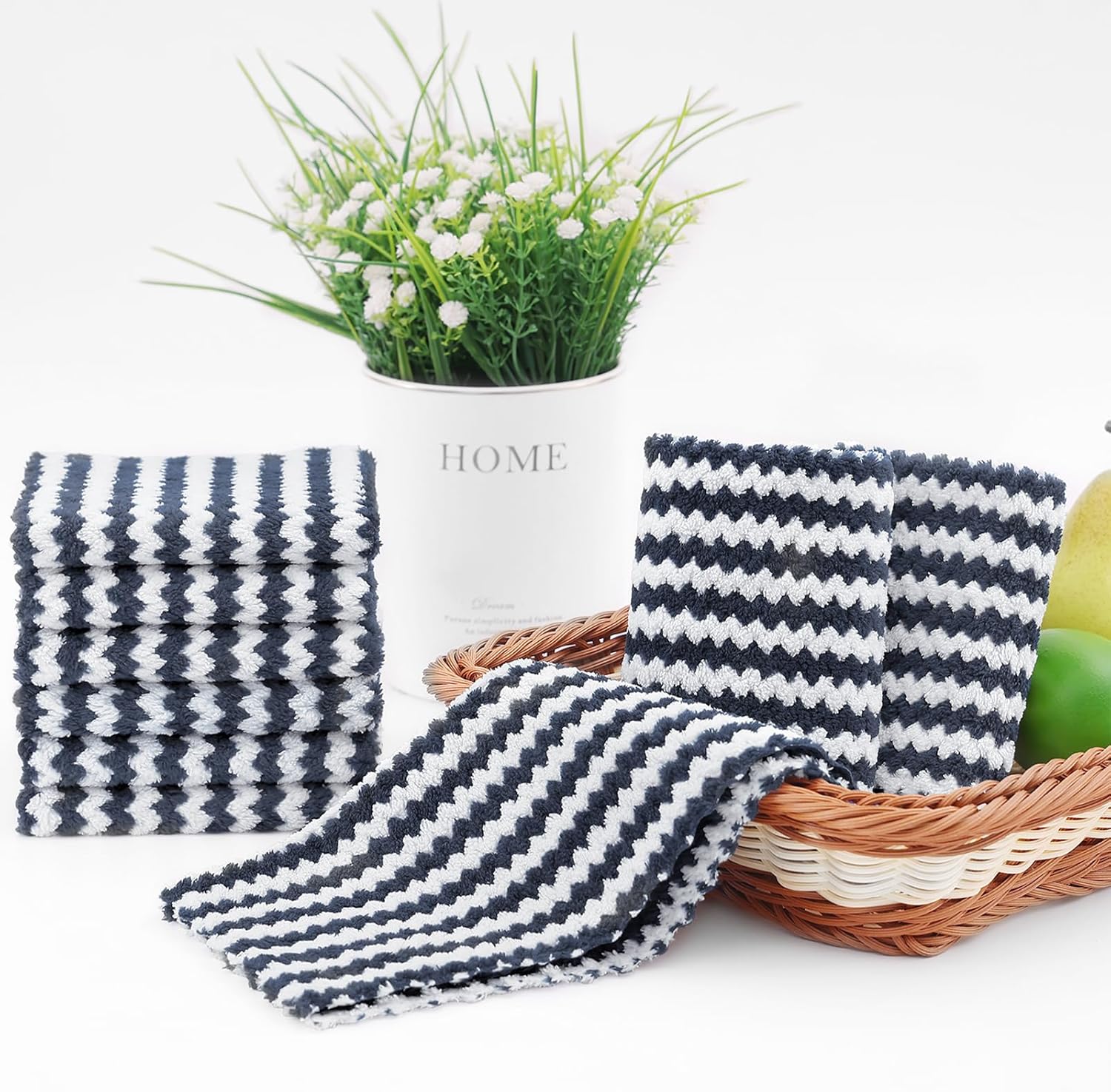 - Value Pack: The collection includes 12 pack Microfiber cleaning cloths, The wavy pattern design and available in a variety of colors to coordinate with any kitchen décor. Measuring 10 x 10 and 10 x 20 inches, it is suitable for any home kitchen needs.