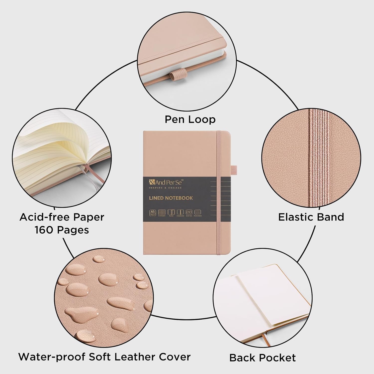 &And Per Se Lined Journal Notebook, 160 Pages, A5 5.7 x 8 inches College Ruled Thick Paper Notebook Journals for Writing, Hardcover Notebooks for Women Men Office School (1 Pack, Apricot)