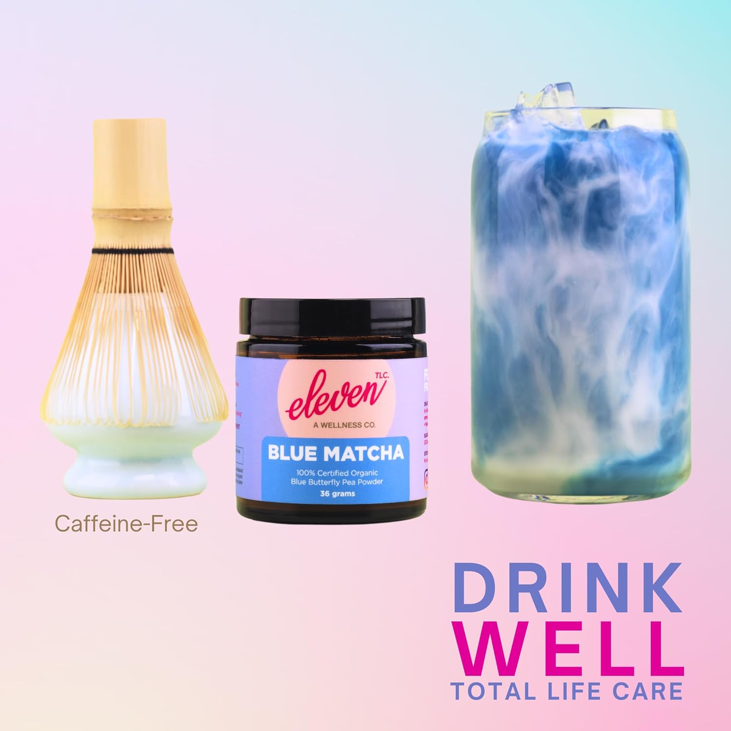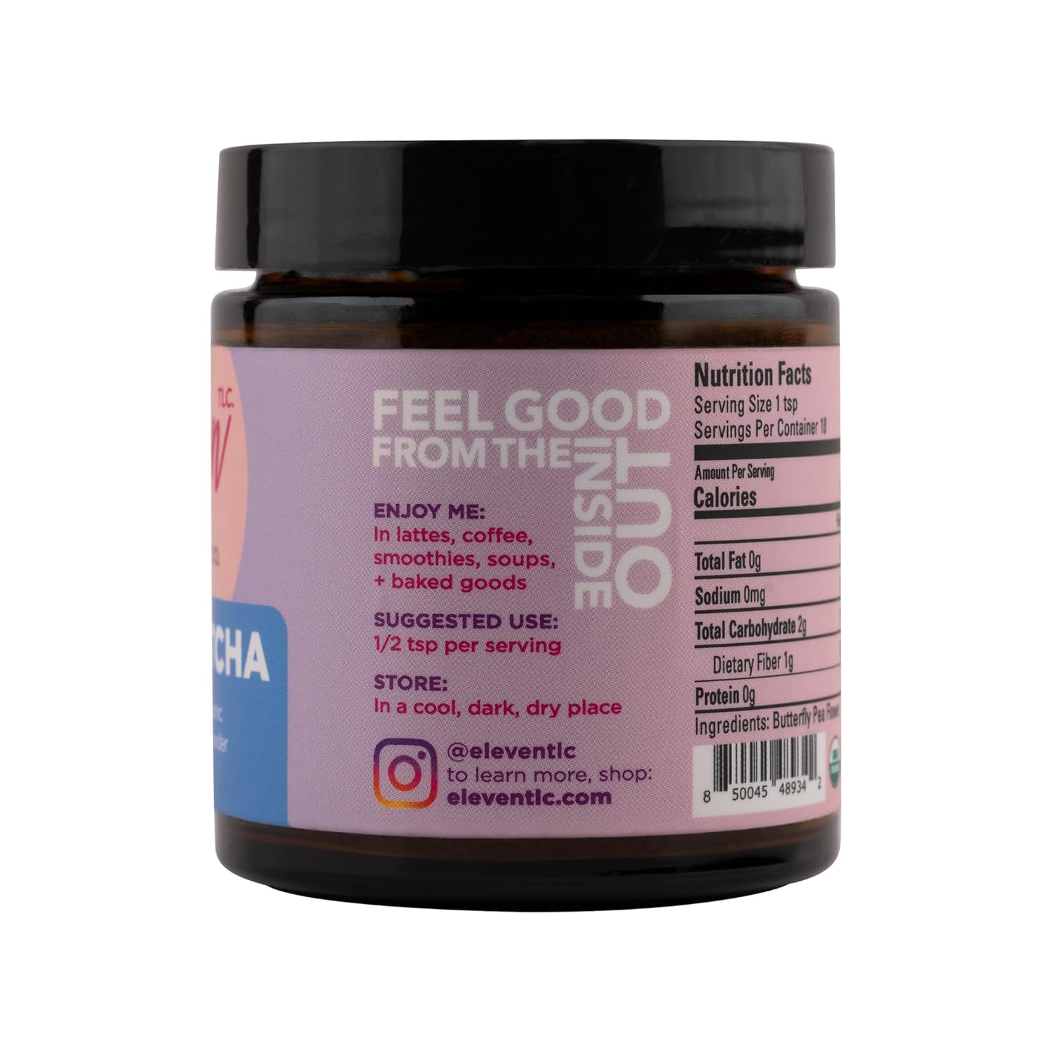 Eleven TLC, Blue Matcha Powder, Butterfly Pea Flower Powder, Matcha Blue Tea, Blue Matcha Latte, Caffeine Free Matcha, Glass Jar, 18 Servings