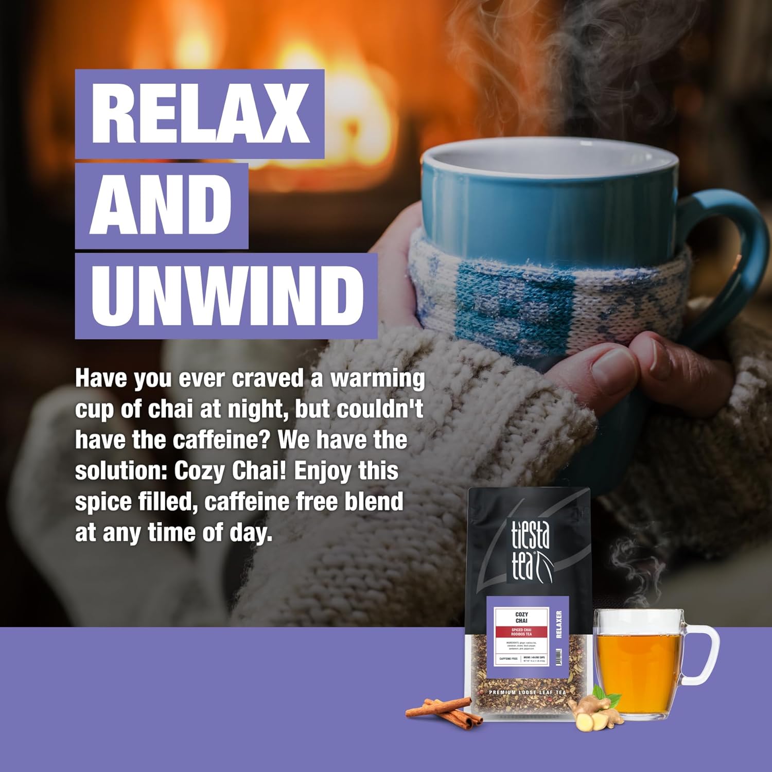 Tiesta Tea - Cozy Chai, Loose Leaf, Spiced Chai Rooibos Tea, Premium Caffeine-Free Herbal Blend, Makes Hot or Iced & Up to 200 Cups, 16oz Resealable Bulk Pouch