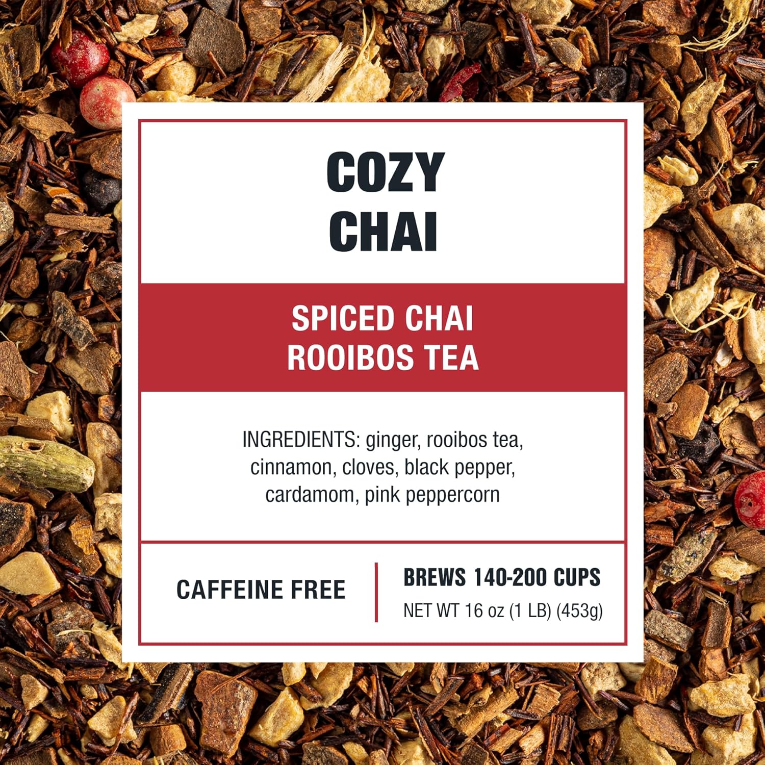 - SPICED CHAI ROOIBOS TEA: Crave the warmth and flavor of chai, day or night? We've got the answer: Cozy Chai Rooibos Tea! Savor this aromatic, caffeine-free blend filled with the comforting spices you love. Whether it's morning, afternoon, or evening, indulge in the soothing allure of chai without the caffeine jitters. Enjoy it hot or refreshingly iced, and relish the essence of summer with every sip.