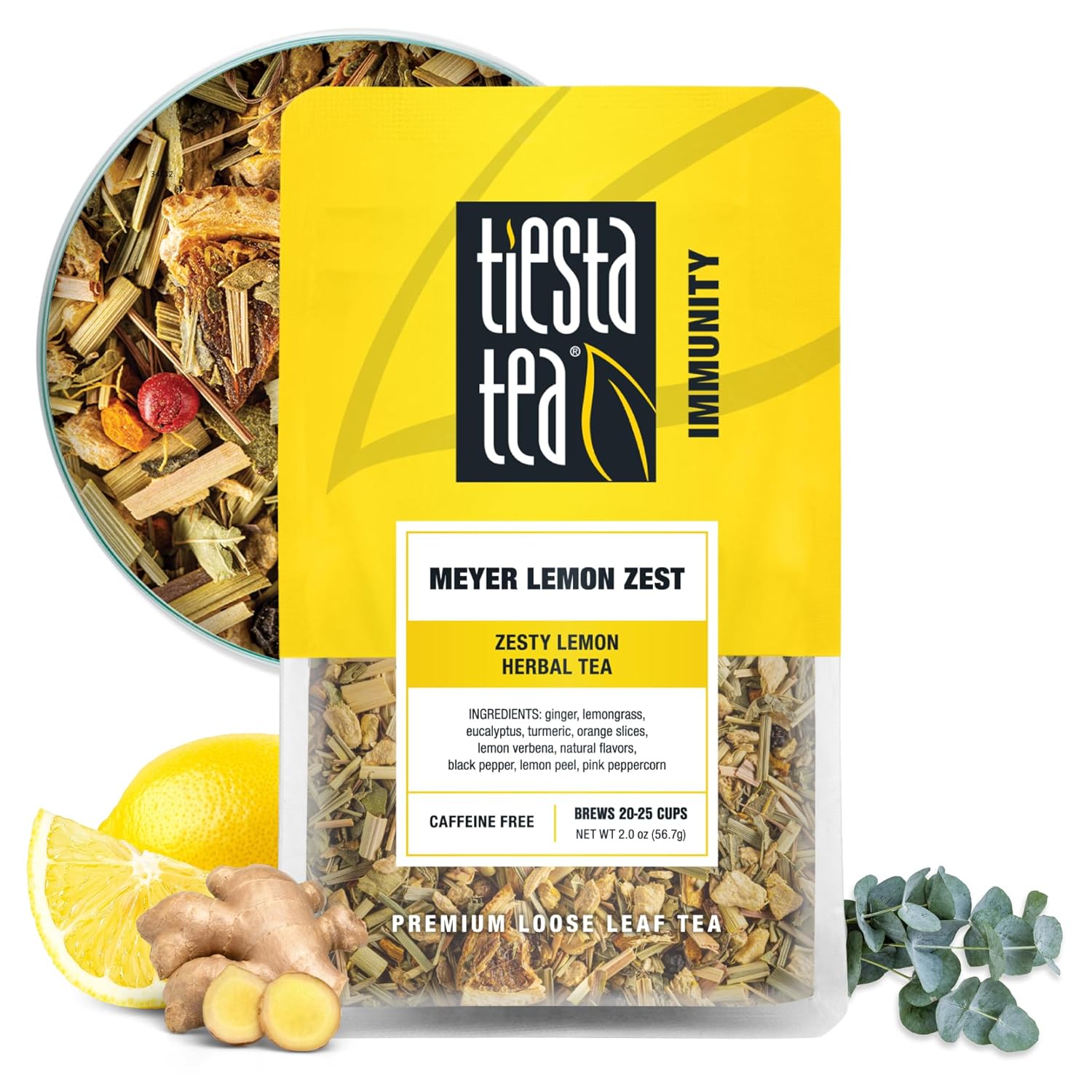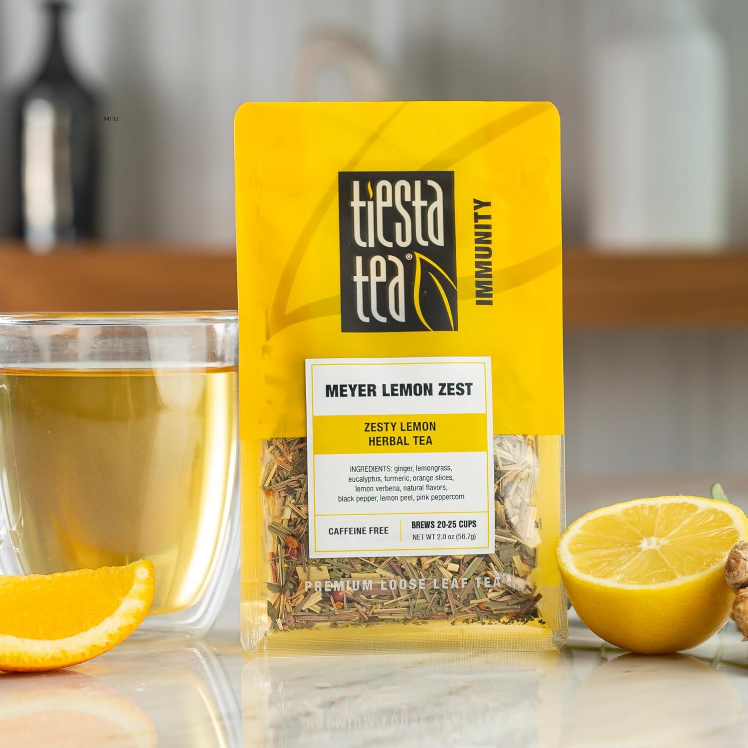 Tiesta Tea - Meyer Lemon Zest, Loose Leaf, Zesty Lemon Herbal Tea, Premium Caffeine-Free Blend, Makes Hot or Iced & Up to 25 Cups, 2oz Resealable Pouch