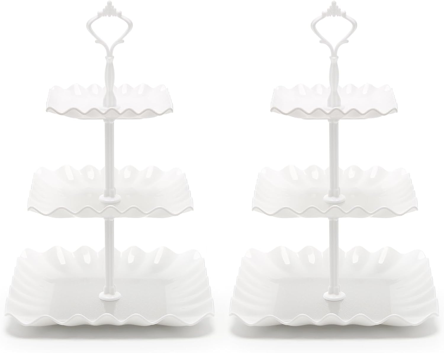 - Elegant Design:Tiered serving stand are carved with wavy edges, the surface is concise and shiny, full of elegant and romantic feeling. Crown handle design, easy to carry.