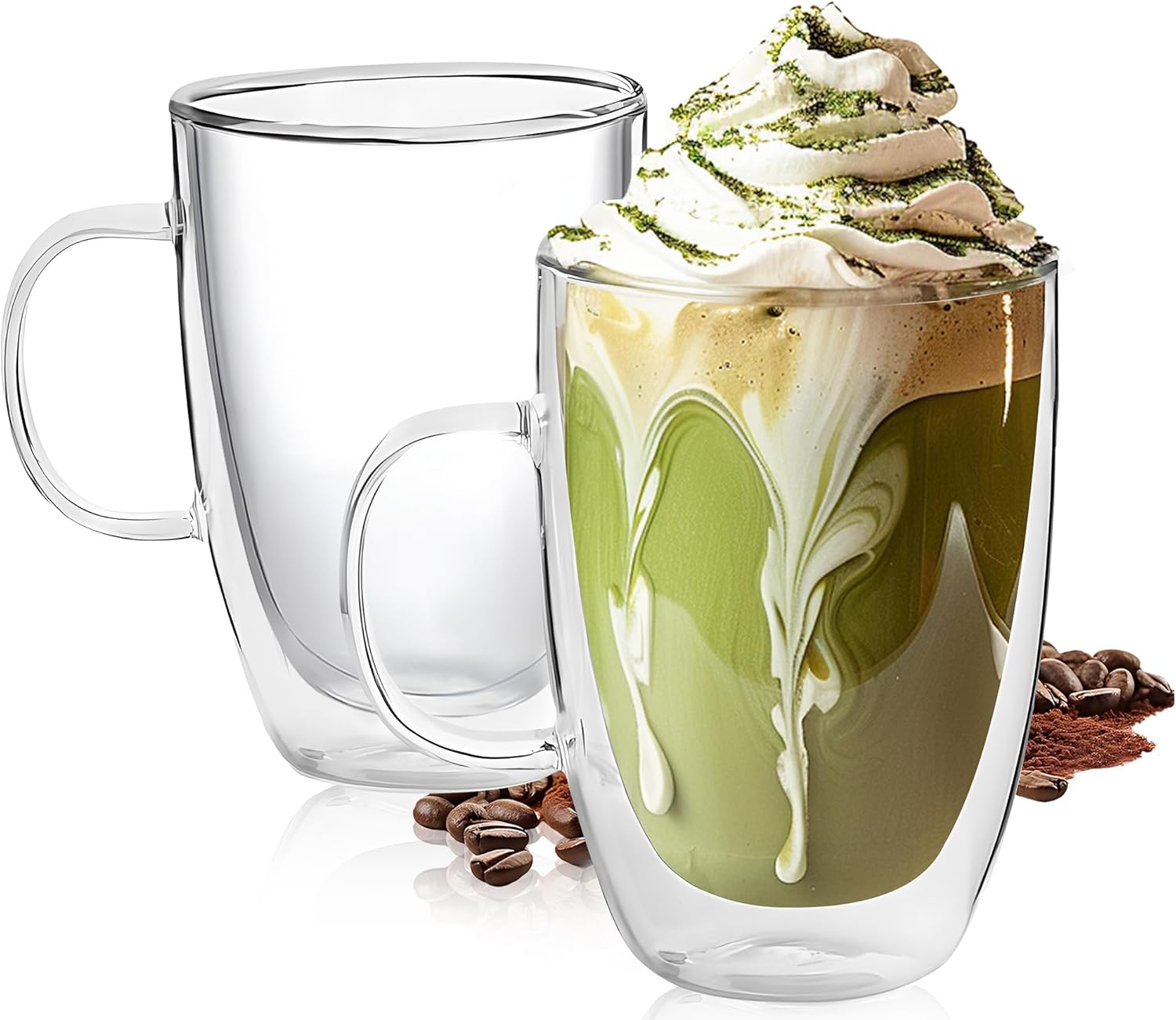 Set of 2 Double Walled Glass Coffee Mugs 16 Ounces Insulated Layer Coffee Cups with Handle Borosilicate Glass Espresso Cup for Hot Beverage,Cappuccino,Tea,Latte,Wine,Microwave Safe