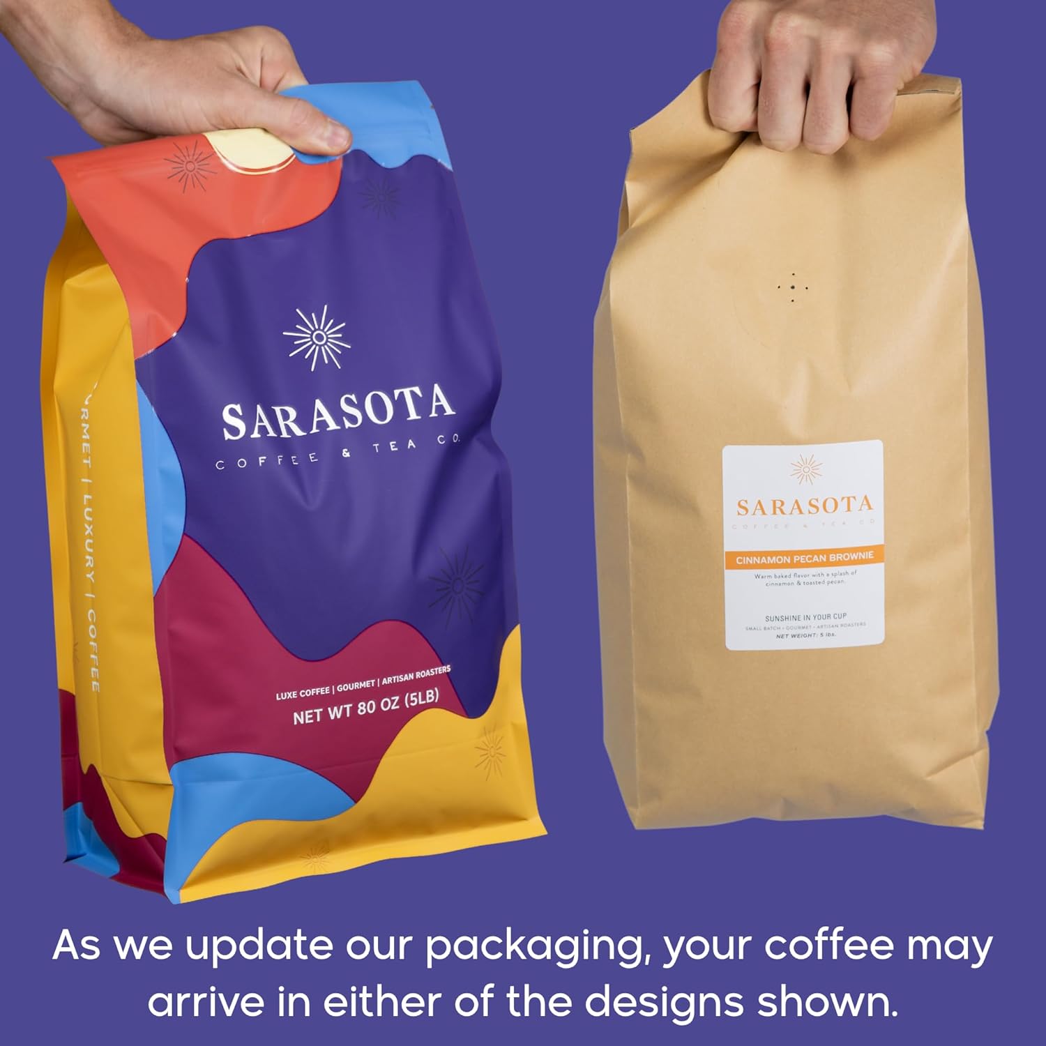 - WHOLE BEAN 5 LB BAG - Sarasota Coffee is offering our incredibly premium roasts, in 5 lb bags; Whole, 100% Arabica Coffee Beans; Our coffee is 100% natural, gourmet, and small batch artisan roasted. Consistently tasting deliciously rich & smooth, like the coffee shop coffee you wish for.