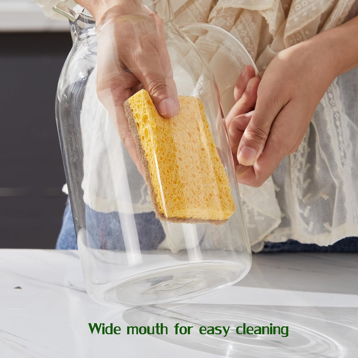 - [Elegant Design] This glass pitcher is handmade and has an elegant shape. It is designed with a large handle for comfortable grip.