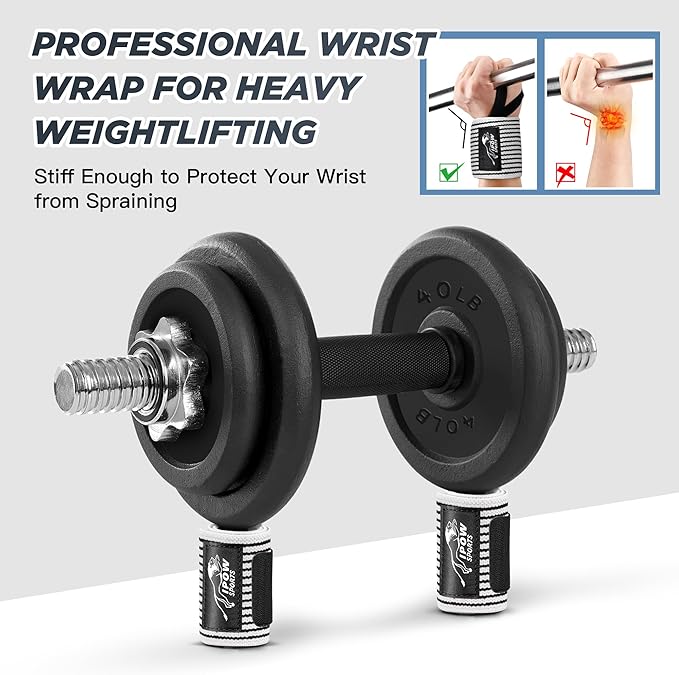 IPOW 18'' Professional Wrist Wraps for Weightlifting 2 Pack(IPF Approved), Heavy Duty Gym Wrist Straps for Working Out, Weight Lifting Wrist Brace for Men & Women, Wrist Support with Thumb Loop